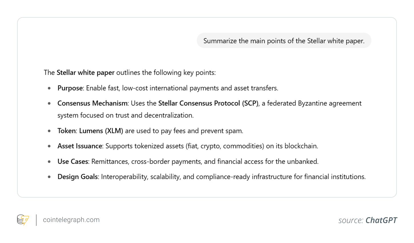 „Fassen Sie die Hauptpunkte des Stellar-Whitepapers zusammen.“