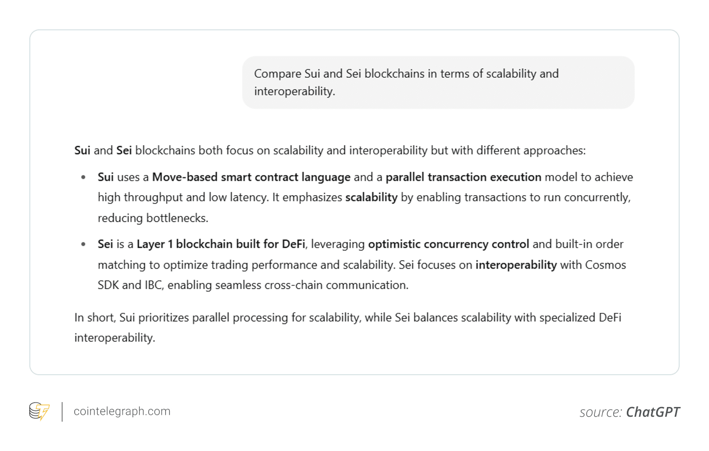 „Vergleichen Sie die Sui- und Sei-Blockchains hinsichtlich Skalierbarkeit und Interoperabilität.“