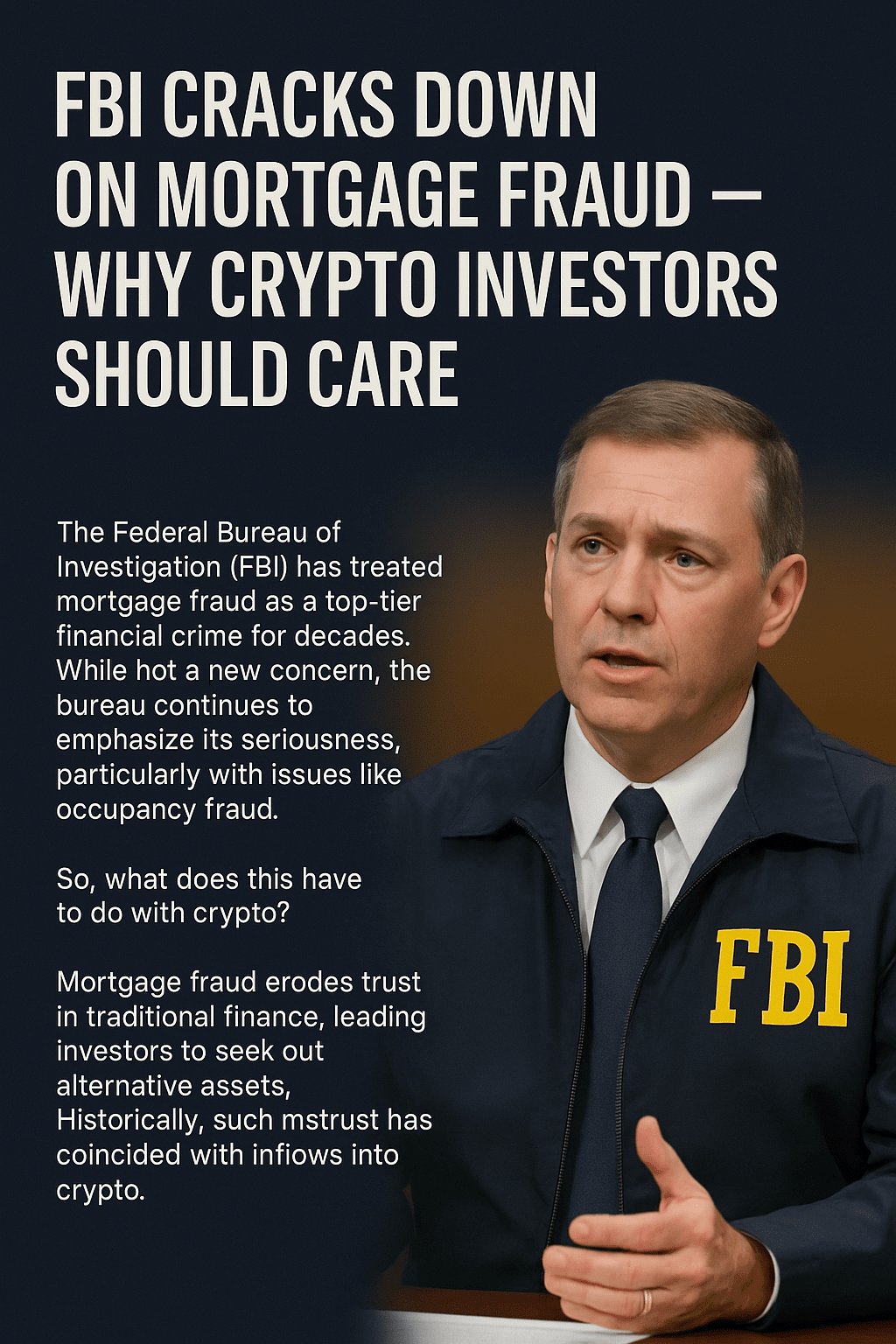 Was hat das also mit Krypto zu tun? Hypothekenbetrug und andere Finanzverbrechen schaffen Misstrauen gegenüber traditionellen Finanzsystemen, was Investoren oft dazu drängt, nach alternativen Vermögenswerten zu suchen, die weniger anfällig für systemische Missbräuche sind. Historisch gesehen haben Momente erhöhter regulatorischer Durchsetzung im Immobilien- und Bankwesen mit Zuflüssen in Krypto zusammengefallen, da Investoren Transparenz, Dezentralisierung und die reduzierte Abhängigkeit von Zwischenhändlern, die Blockchain bietet, suchen.