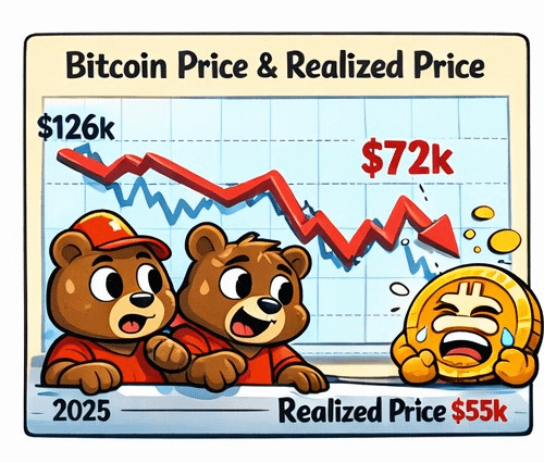 Realized Price, which reflects the average cost basis of current holders, sits in the mid-$50ks based on Glassnode data. With spot trading not far above that, unrealized profit and loss is mixed.