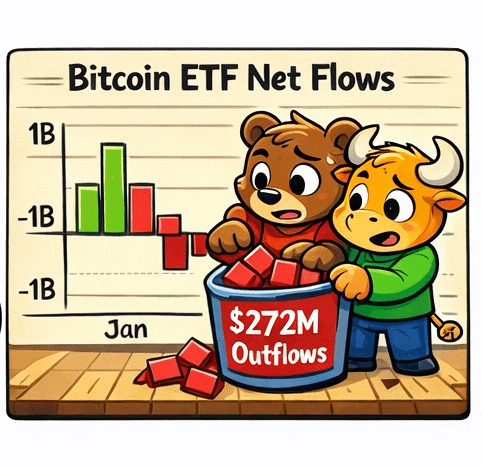 U.S. spot Bitcoin ETFs have logged multiple days of heavy net outflows, including roughly $272M on Feb 3 alone. January, in aggregate, showed multi-billion dollar net outflows across products.