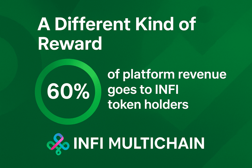 Das SbSe-Protokoll von Infi Multichain führt ein einzigartiges Einnahmemodell ein: Anstatt neue Token zu minten oder sich auf Inflation zu verlassen, teilt die Plattform 60 % der tatsächlichen Einnahmen direkt mit den INFI-Token-Inhabern.