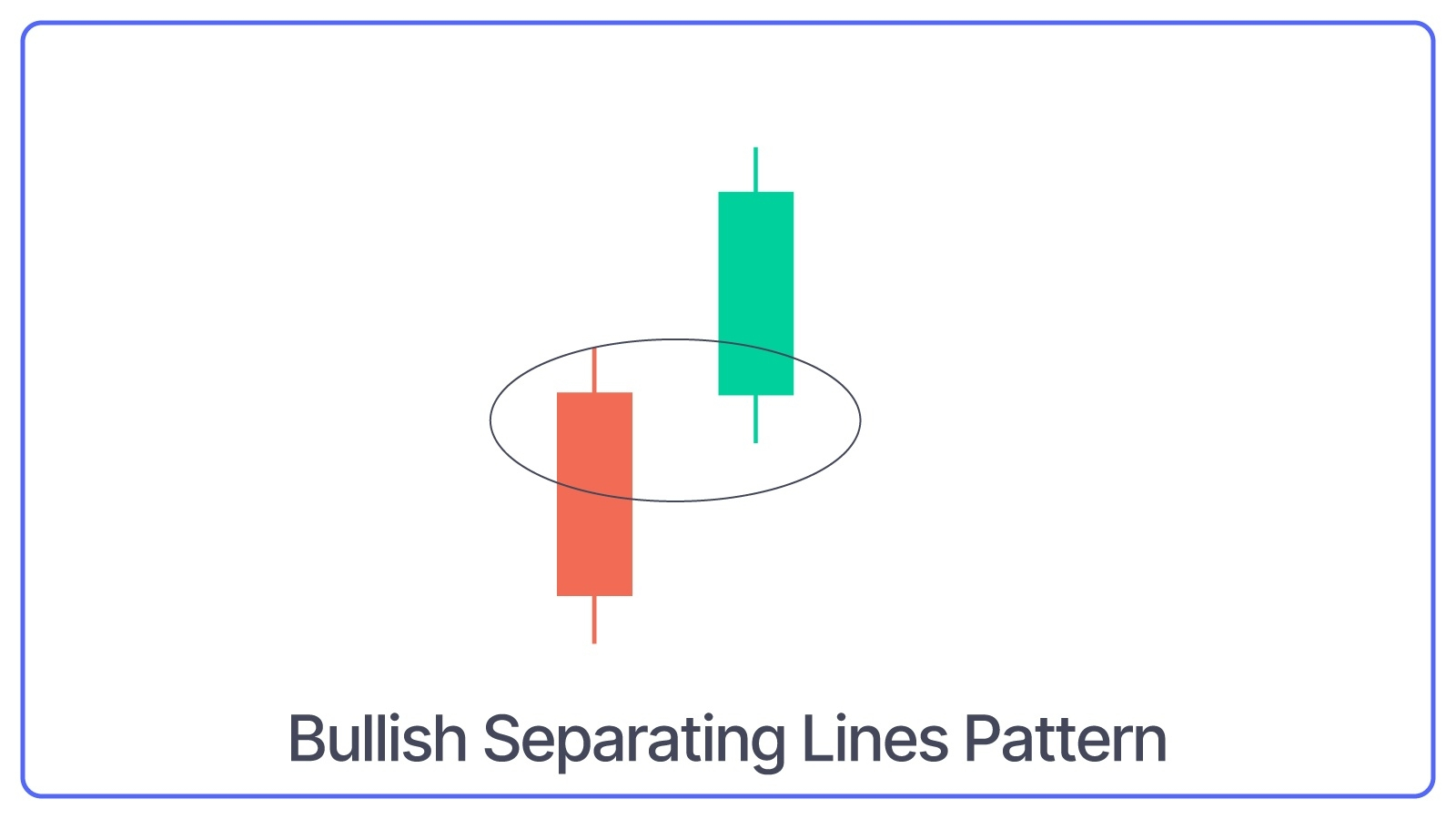 The bullish Separating Lines Pattern is a two-candlestick pattern that includes a bearish candle followed by a bullish candle that opens at the same level as a bearish candle.