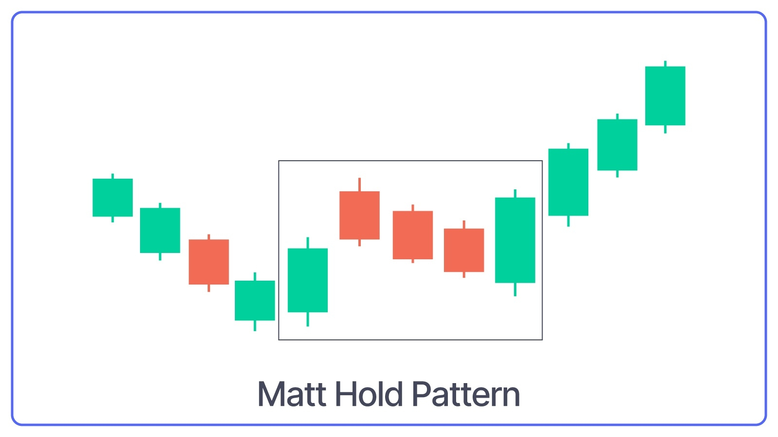 What Mat Hold Pattern Indicates: Brief pause or consolidation in an uptrend.