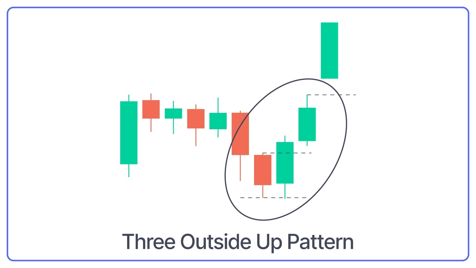What Three Outside Up Pattern Indicates: This pattern confirms the strength of the bullish reversal.