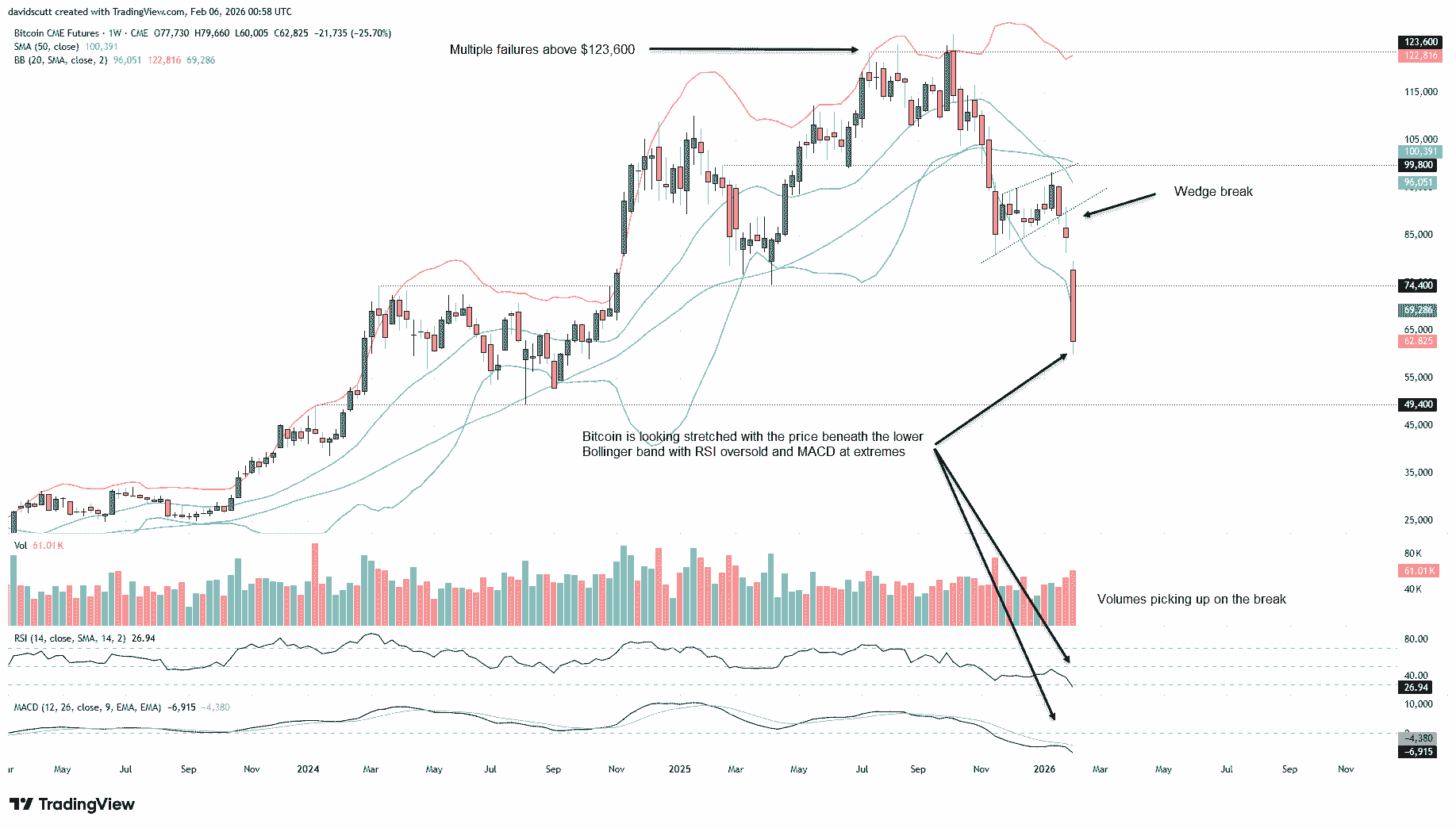 Bitcoin plunged below $61,000 (even touching ~$60,000 lows on Feb 6 per Reuters & Fortune reports), wiping out Trump-era gains from the $126K ATH in Oct 2025. This was driven by thin liquidity, ETF outflows, and macro fears (Fed uncertainty, tech sell-off).