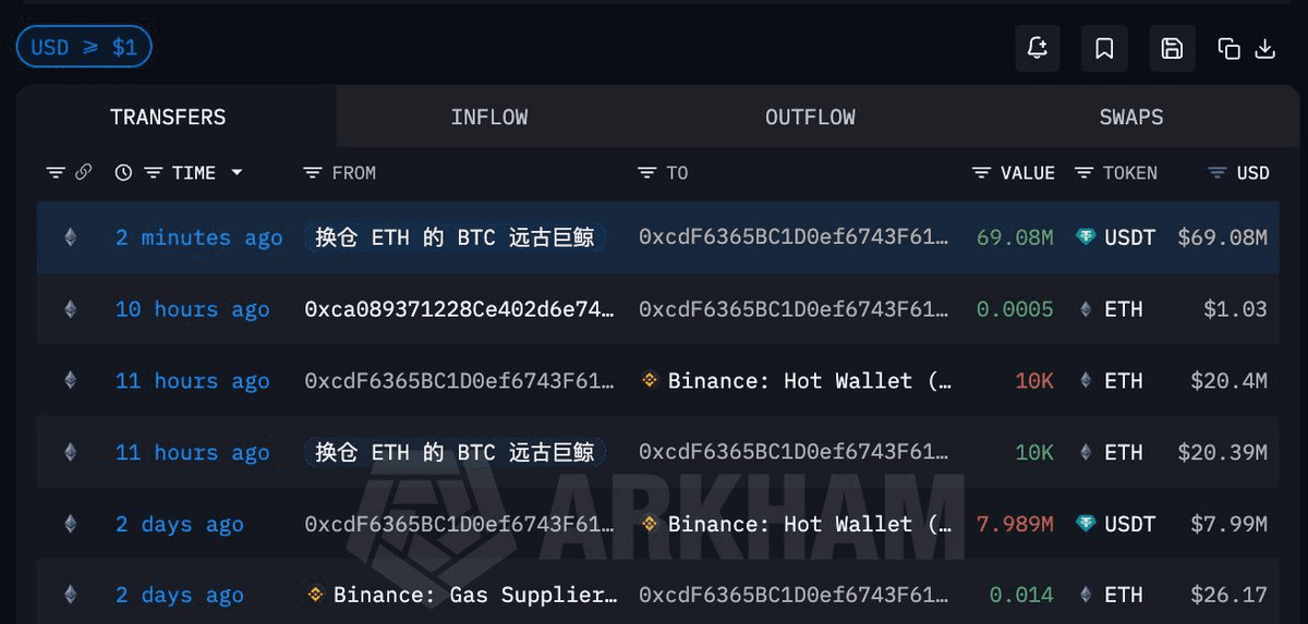 Wenn fast 70 Millionen USDT solche großen Stablecoins in eine Börse eingezahlt werden, bleiben sie in der Regel nicht lange ruhig. Ihr Zweck zielt oft auf mehrere Richtungen ab: die Vorbereitung auf den Kauf anderer Vermögenswerte, die Auffüllung von Margin für hochgehebelte Positionen oder die Übertragung an einen neuen Ort.