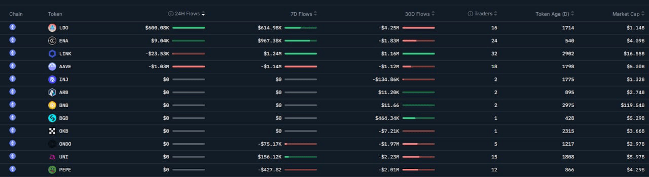 🟡 Große Trader („smart money“ laut Nansen) kaufen LINK, Ethena und Lido DAO