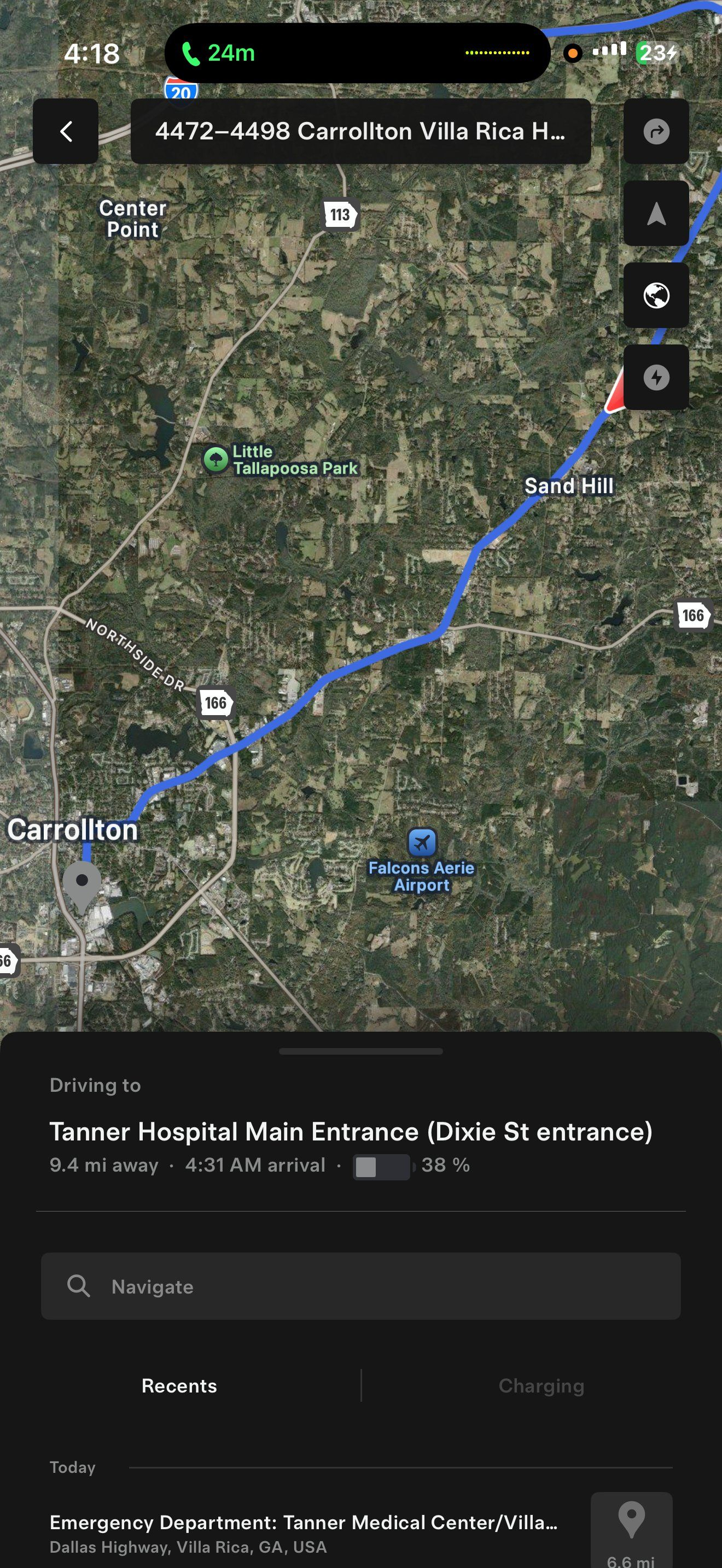 Sein Model Y hatte gerade die Ausfahrt Carrollton passiert. Das Auto bog sofort zur nächsten Ausfahrt ab, drehte um und fuhr wieder auf die I-20 East, bevor es zurück zur Ausfahrt Carrollton kam. Dann fuhr es entlang der lokalen Straßen und hielt direkt vor dem Eingang zur Notaufnahme des Tana Healthcare Centers. Obwohl er noch versuchte, bei Bewusstsein zu bleiben, konnte er in den 'Mad Max'-Modus wechseln, um so schnell und sicher wie möglich dorthin zu gelangen. Sie hatten vorher angerufen, das Personal der Notaufnahme war bereit und wartete.