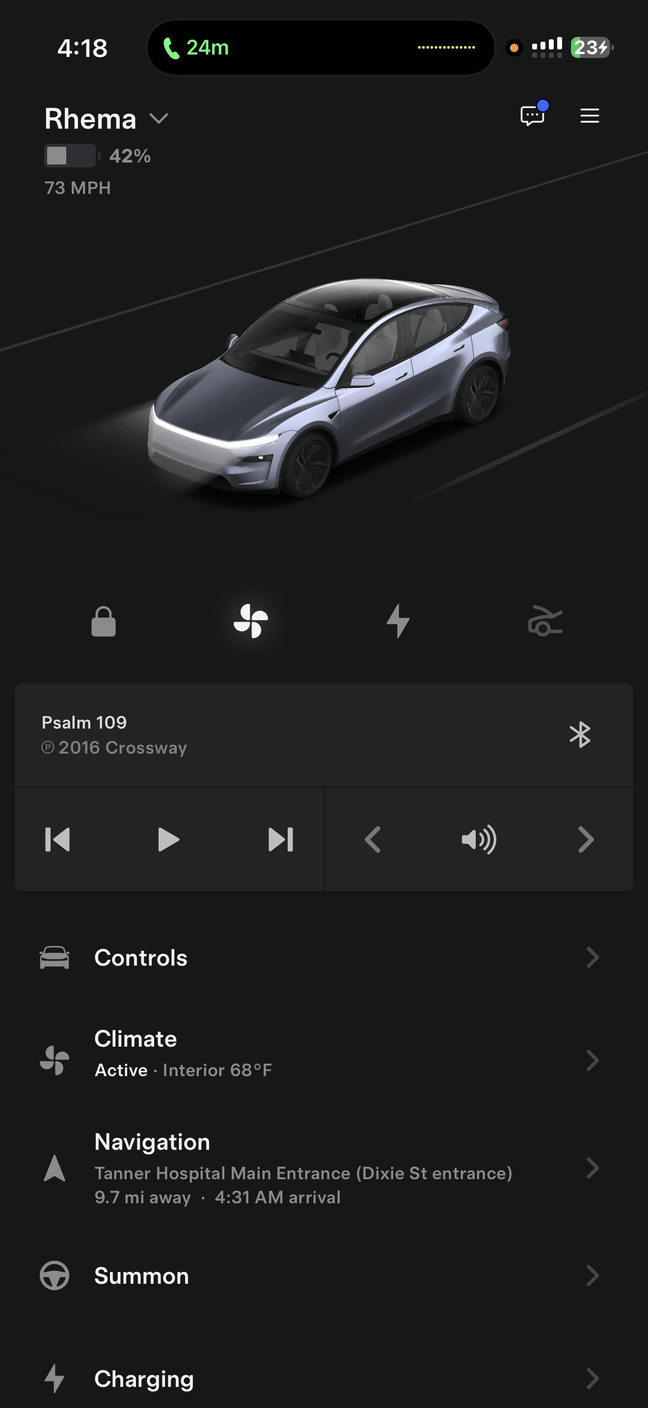 Sein Großvater kontaktierte Jacks Onkel in Douglasville, Georgia, der ihnen sagte, dass es in der Nähe das Tana Healthcare Center gibt, direkt an der Interstate 20, wo Jacks Vater ist. Er suchte sofort die Adresse auf Google Maps und teilte das Ziel über die App mit seinem Tesla. Als autorisierter Fahrer seines Kontos konnte Jack die Navigation seines Juniper FSD aus der Ferne ändern - alles von seinem 2014 Model S (ausgestattet mit Openpilot) aus. Natürlich war Jack schon in die Richtung unterwegs, in die er fahren wollte.