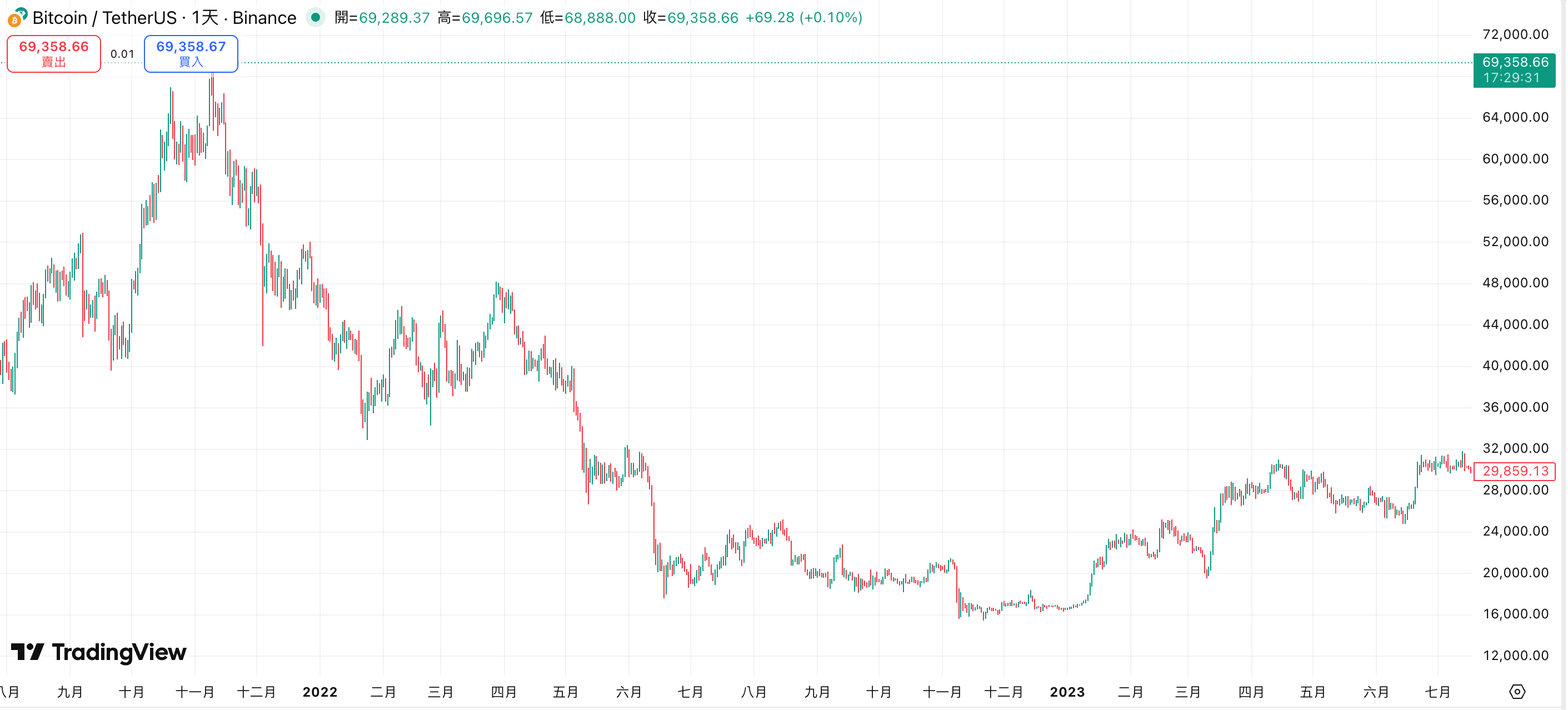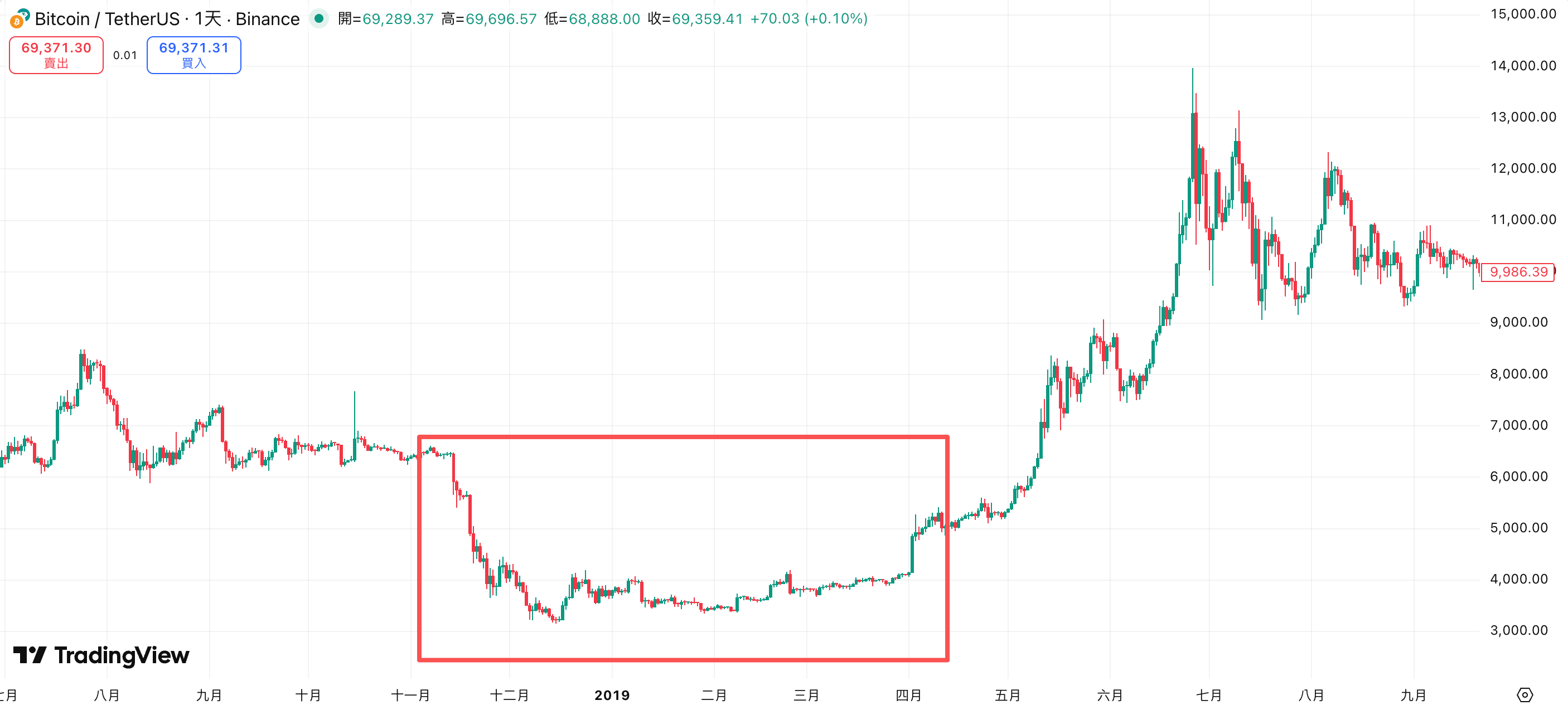 Blickt man auf die letzte Runde Bullen und Bären, erreichte der Bullenmarkt einen Höchststand von 69000, der Tiefpunkt lag bei etwa 15000, was einen Rückgang von etwa 78% bedeutet. In dieser Runde lag der Höchststand bei 126000, der aktuelle Tiefpunkt bei 60000, der Rückgang beträgt auch nur 52%.