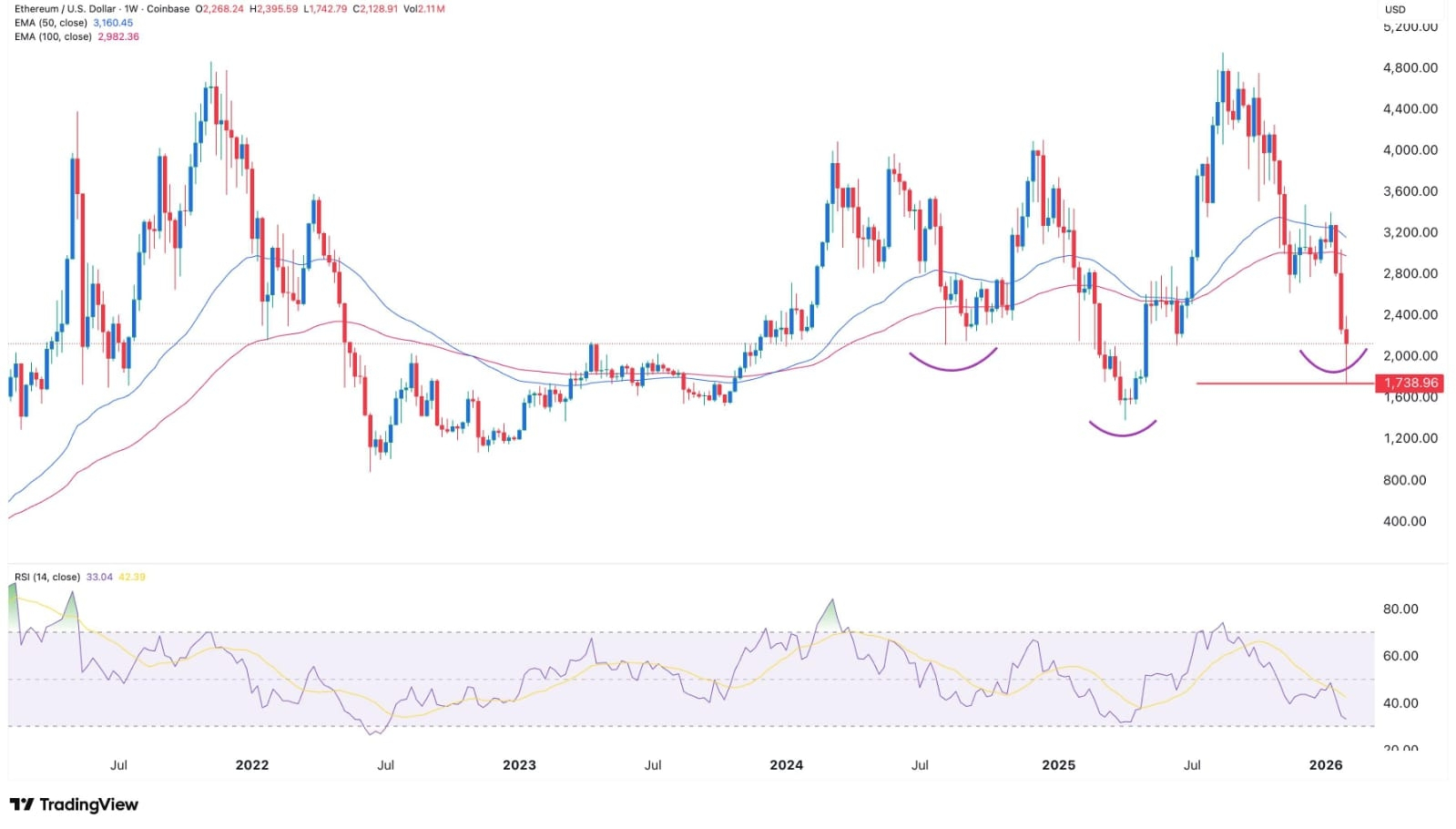 Ethereum ( $ETH ) token was trading at $2,080, up sharply from last week’s low of $1,738. This price is much lower than the all-time high of nearly $5,000.