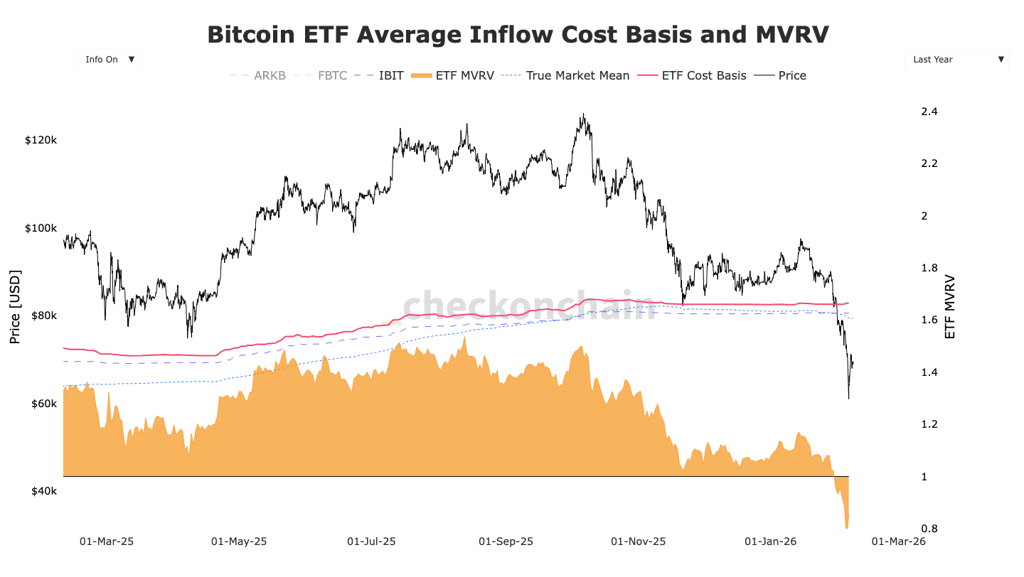 Theo dữ liệu từ Checkonchain, các quỹ ETF Bitcoin giao ngay tại Hoa Kỳ hiện đang có mức giá mua trung bình là 82.000 USD.