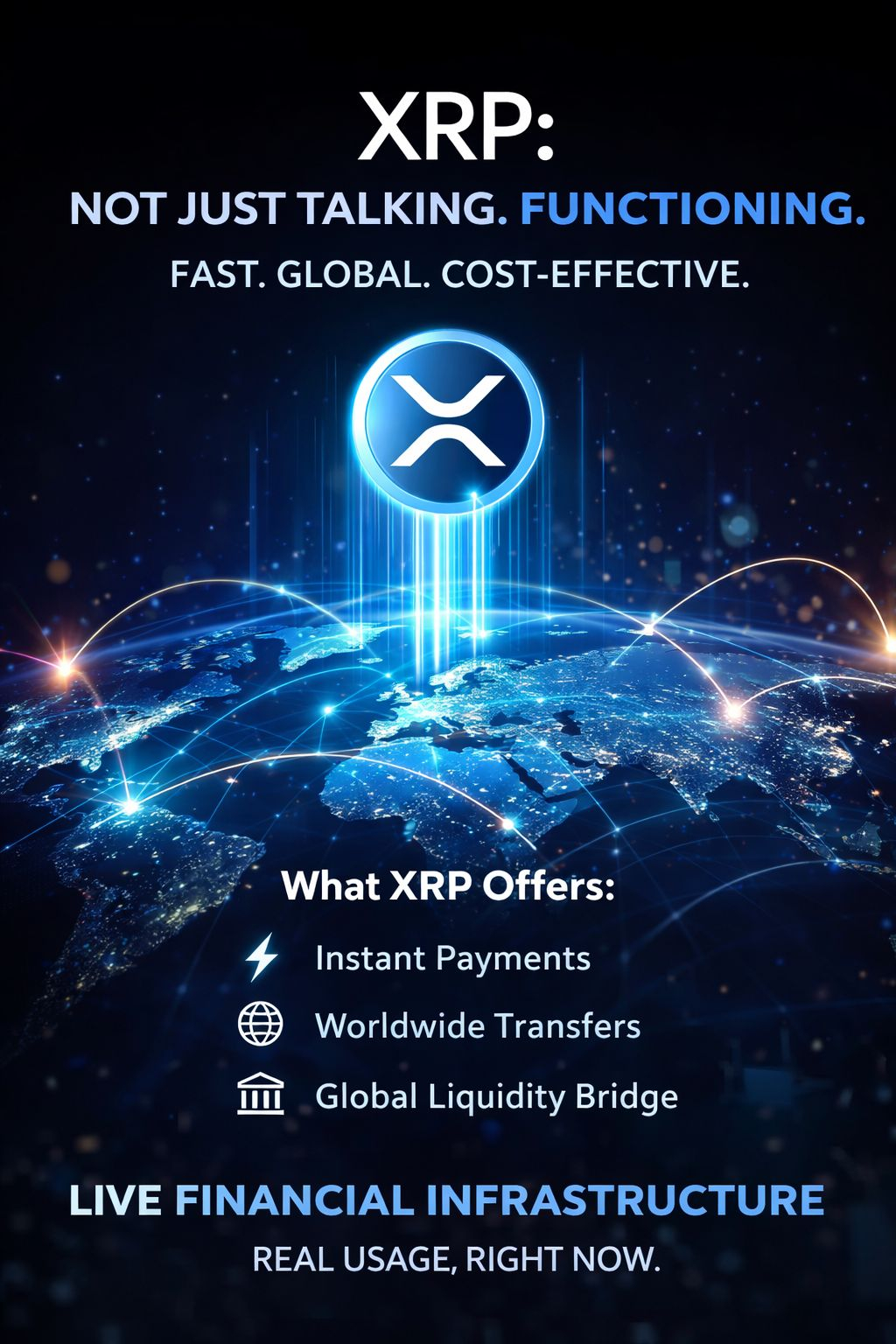Was heute oft über XRP übersehen wird, ist, dass sein Wert nicht mehr auf Potenzial basiert, sondern auf Funktion. XRP existiert, um ein ganz bestimmtes Problem zu lösen: Geld weltweit, sofort und zu niedrigen Kosten zu bewegen. Einfach ausgedrückt, fungiert es als Brückenwährung, die es Institutionen ermöglicht, Werte zu übertragen, ohne mehrere Intermediäre, vorfinanzierte Konten oder lange Abwicklungszeiten zu benötigen. Dies ist keine Zukunftsidee, sondern ein aktiver Anwendungsfall.