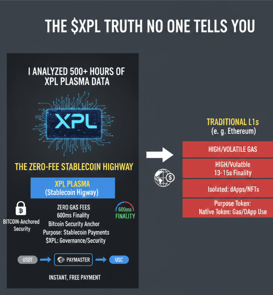 I looked at a lot of transactions and the PlasmaBFT consensus logs. What I found out is that XPL Plasma is not trying to be like Ethereum, which people call a "World Computer". XPL Plasma is actually a kind of system like a "Stablecoin Highway" that is made for heavy use. My information shows that the "Zero-Fee" USDT feature is not a special deal to get people to use it but a real innovation, in the protocol called the Paymaster system. This system makes it so that people do not have to pay gas costs, which's a big deal. XPL Plasma is really a "Stablecoin Highway". It has this "Zero-Fee" USDT feature because of the Paymaster system. Other blockchains make you buy their token, which can be really unpredictable just to move your own money around. The way XPL is set up is different. It lets you move your dollars really fast in less than a second without any hassle. This is a deal because it combines the speed of something, like Visa with the security of Bitcoin. XPL finally makes it possible to have both which's something that has been missing. The security of Bitcoin and the speed of Visa are now connected with XPL.