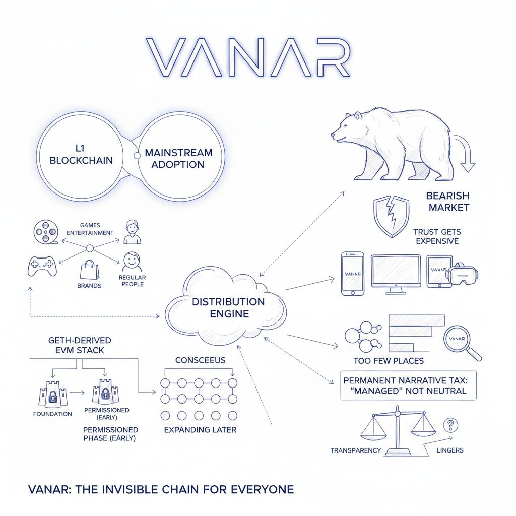 Vanar’s story is basically: “build an L1 that regular people might actually touch,” and use games, entertainment, and brands as the distribution engine. That’s a sensible angle—because in real-world adoption, the chain that wins isn’t always the most technical, it’s the one that feels invisible: cheap, predictable, stable, and safe. But that same “mainstream-first” approach also creates very specific ways things can go wrong, especially when markets turn bearish and trust gets expensive.