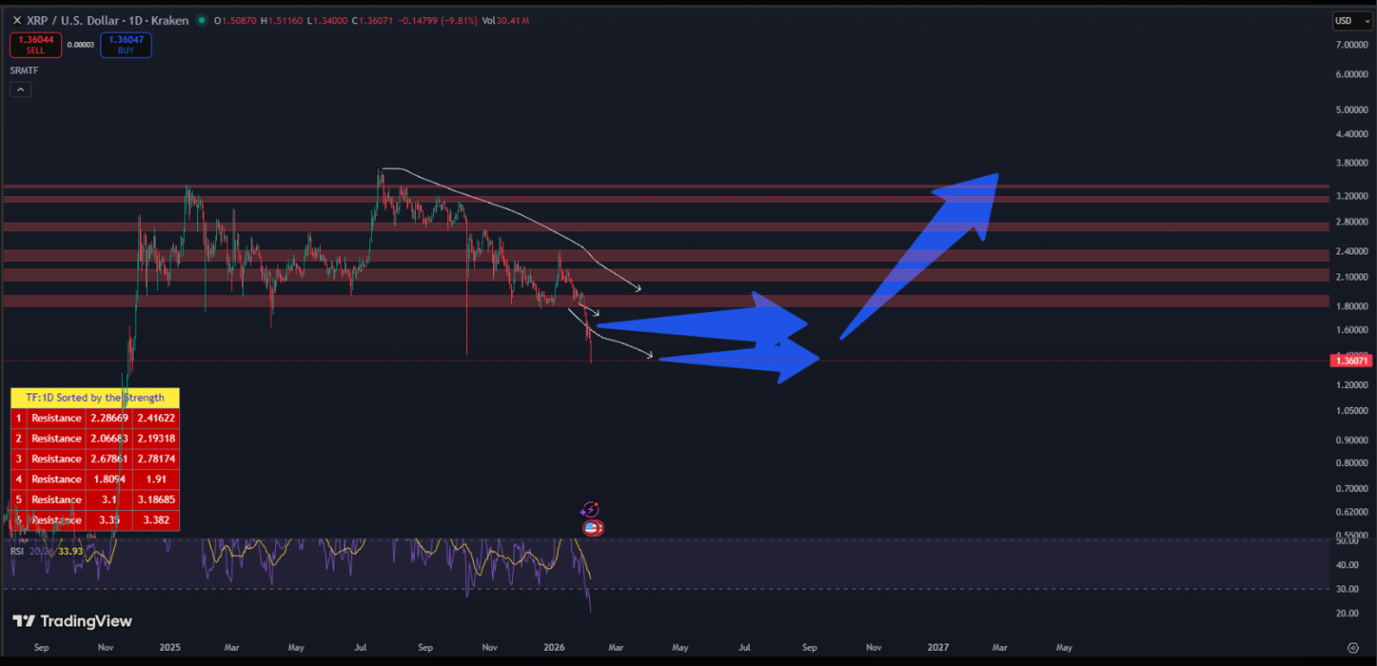 Der jüngste Rückgang von XRP hat Händler gefragt, ob das Schlimmste vorbei ist. Die Preise waren seit Q4 2025 schwach, und Berichte besagen, dass der Token etwa die Hälfte seines Wertes verloren hat, von einem Eröffnungskurs im Oktober von fast $2.80 auf etwa $1.42, während wir sprechen. Dieser Rückgang kam mit einer starken Bewegung in den Momentum-Indikatoren, die Händler selten ignorieren.
