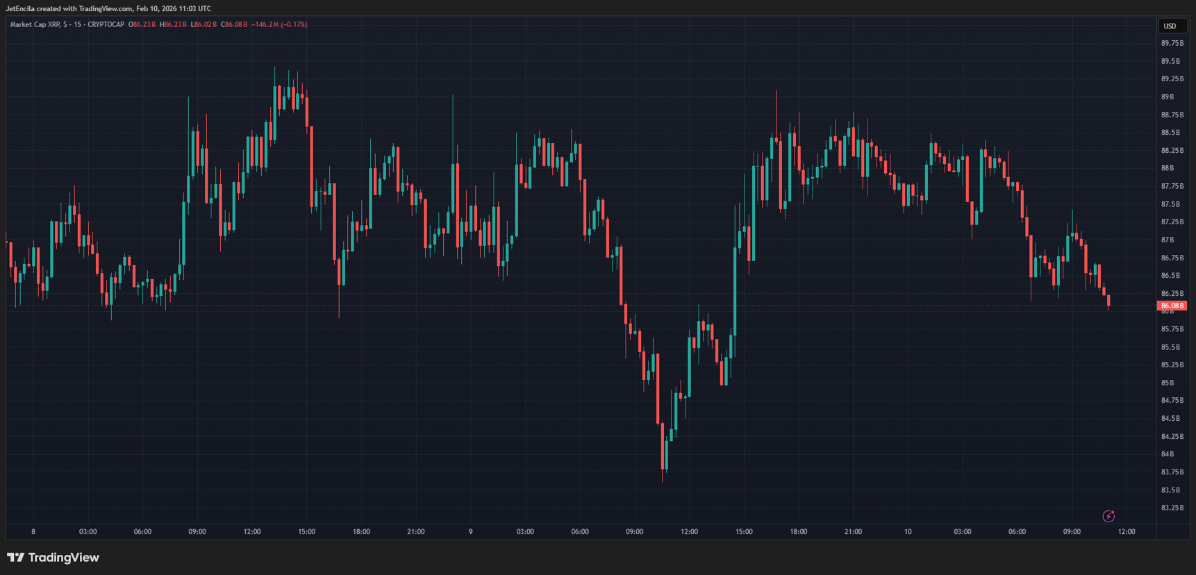Dominanzmetriken haben sich im Bereich von 3.5% gehalten und sind sogar auf etwa 3.6% gestiegen. Diese Datenpunkte bedeuten, dass XRP nicht isoliert zusammenbricht; es bewegt sich in einem Markt, der insgesamt schwach ist.