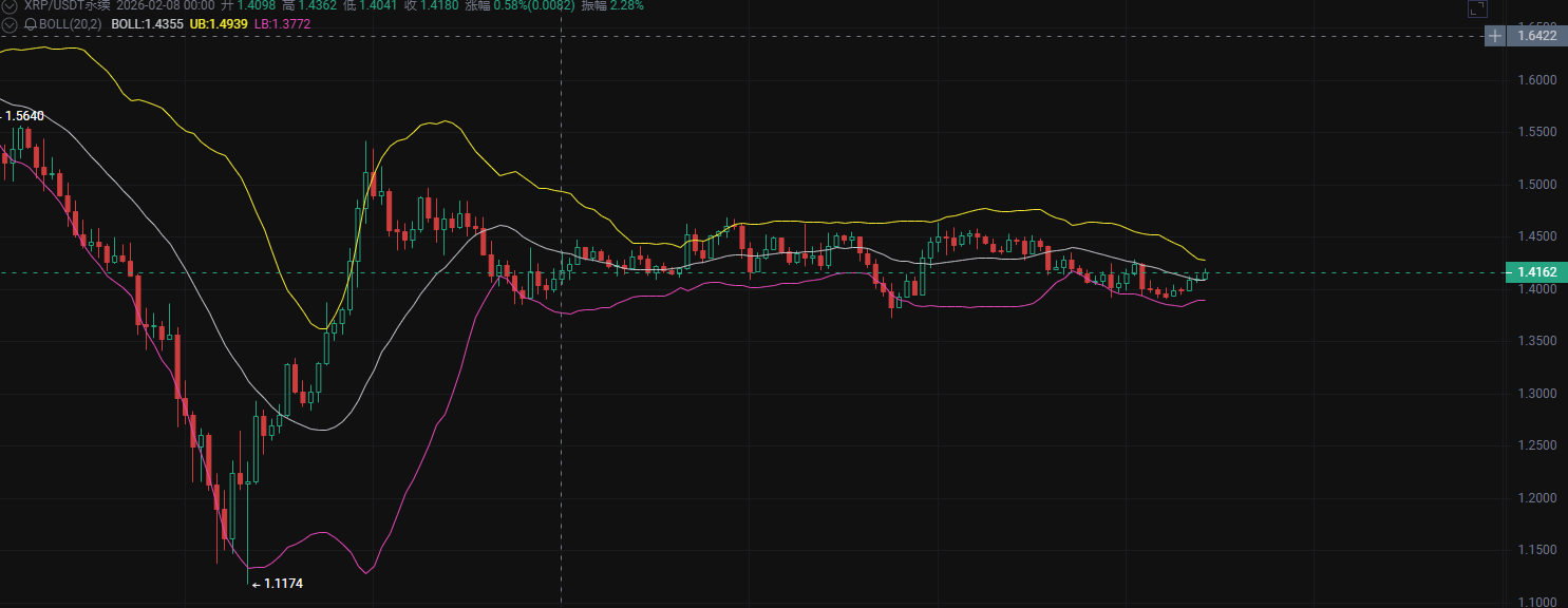 XRP 一小时与四小时同时走弱,横盘的尽头只剩一个方向