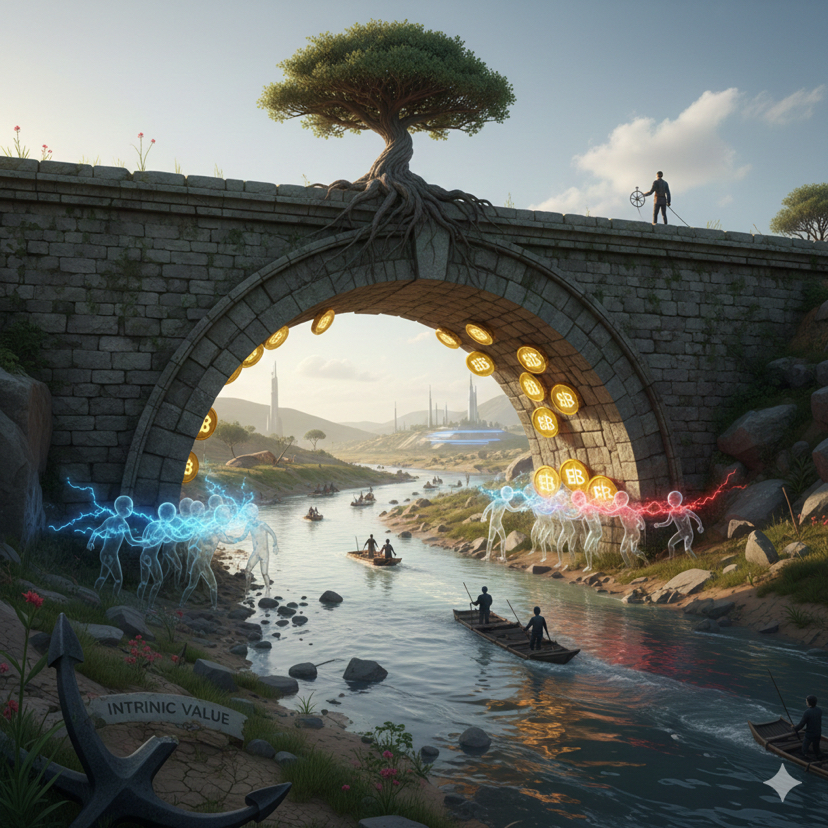 In Wirklichkeit geht es bei dieser Besessenheit nach dem intrinsischen Wert oft weniger um rationale Analyse und mehr um psychologische Abwehr. Wenn die Unsicherheit steigt, suchen die Menschen instinktiv nach einem theoretischen Anker, um Angst und Selbstzweifel entgegenzuwirken. Der „intrinsische Wert“ wird zu einem mentalen Rettungsboot - das es den Inhabern ermöglicht, sich gerechtfertigt zu fühlen, selbst wenn der Markt sich gegen sie bewegt.