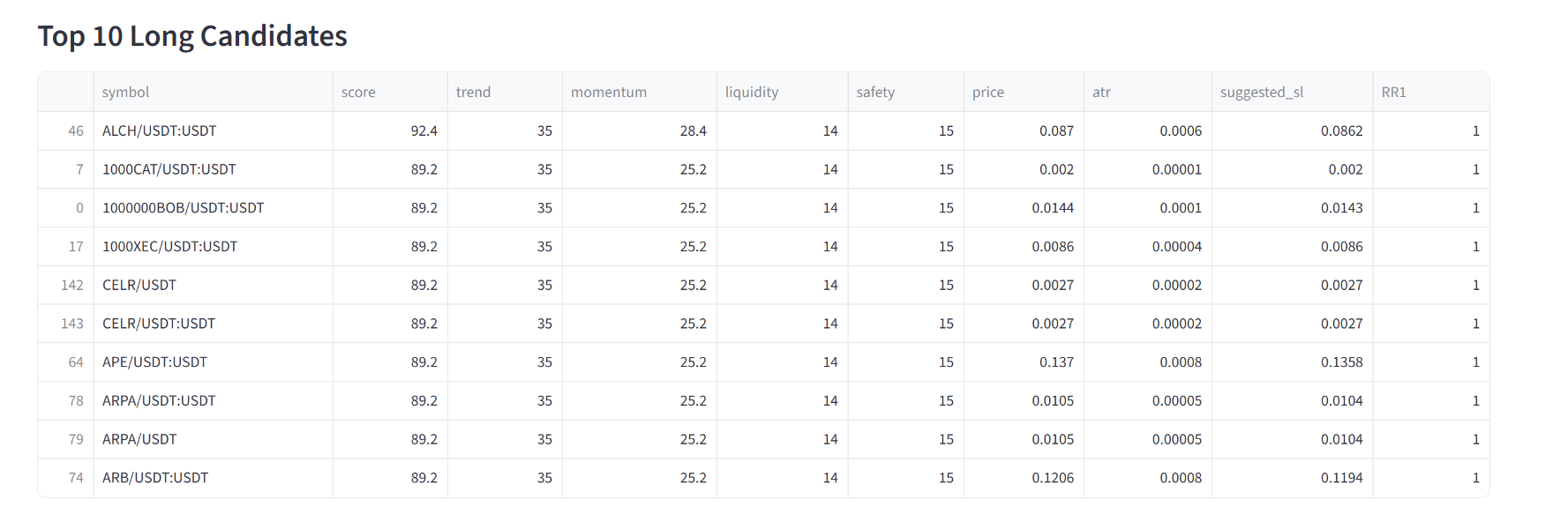 1000000BOBUSDTPerp0.01376-0.14%: Mit einer identischen Punktzahl von 89,2 und 25,2 Momentum auf dem dritten Platz. Das enge Risiko-Ertrags-Verhältnis hier zieht die Aufmerksamkeit professioneller Scalper-Händler an.