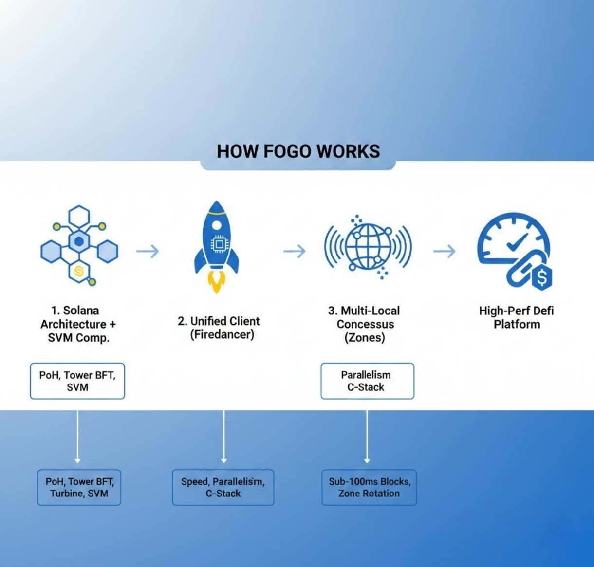 这种设计让@Fogo Official 在2026年初的DeFi版图中占据了一个独特位置。当Solana还在纠结网络拥堵、以太坊L2碎片化严重时,Fogo用纯Firedancer客户端+精选验证者集+同地部署架构,把高频交易所需的基础设施做成了开箱即用的默认配置。不是"支持"DeFi,是为DeFi而生。