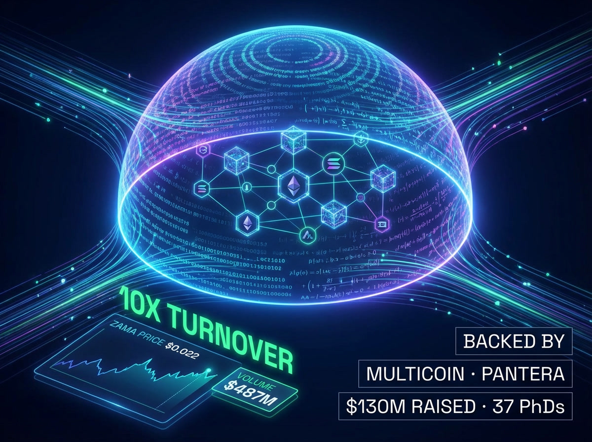 You're early to this one. $ZAMA just went live on Feb 2–3, 2026 via a sealed-bid Dutch auction. Currently trading at ~$0.022–$0.024. Down -37% from its $0.0398 ATH (literally days ago). Volume is WILD — $487M+ in 24 hours on a $48M market cap. That's 10x turnover. Let me explain why this matters. 🔐