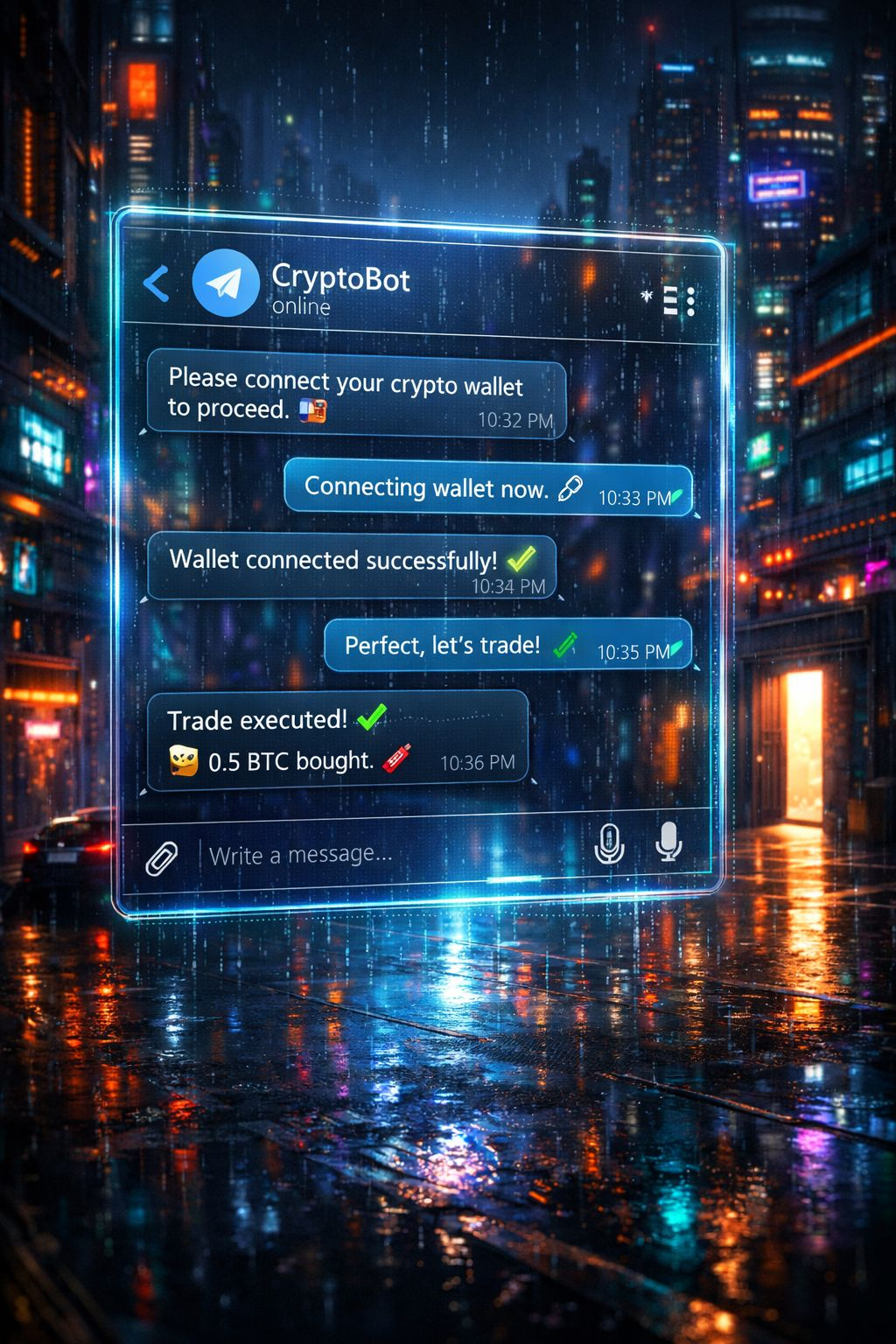 It existed inside Telegram 💬. You opened a bot. You connected a wallet. You paid in crypto — or even in Telegram Stars ⭐, the platform's own currency, like buying an upgrade in a video game. No KYC. No forms. No interrogation. No waiting room.