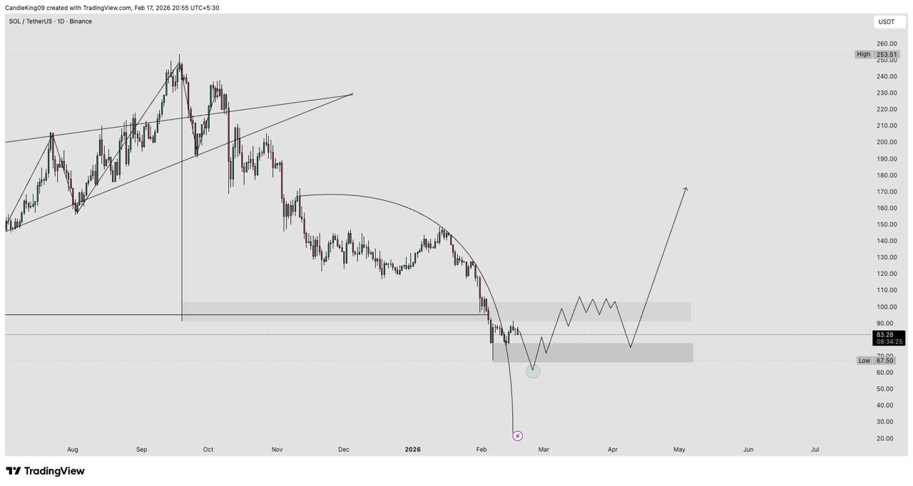 SOL is showing a bounce from the strong demand zone ($65–$75) after a sharp downtrend.