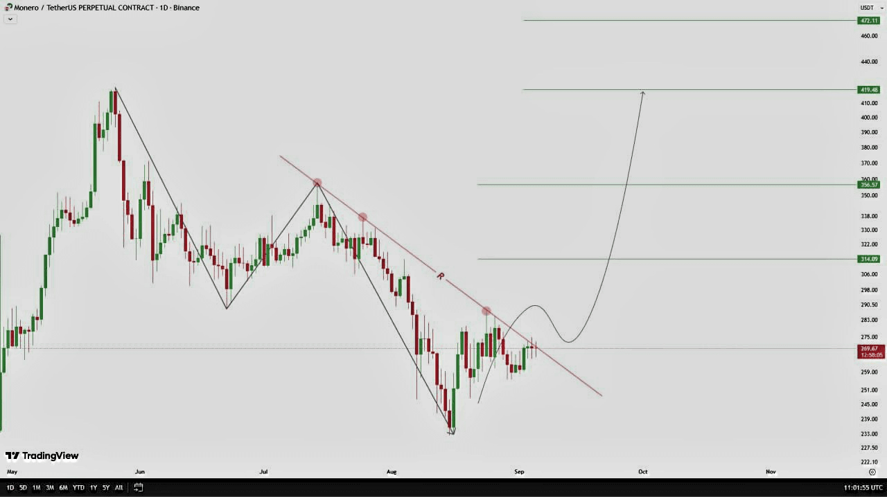 $XMR Der Preis hat ein Muster gebildet, und wenn die abwärts gerichtete Trendlinie durchbrochen wird, kann dies als Aufwärtsbewegung betrachtet werden. Wir haben auch die Ziele festgelegt, die wir auf dem Diagramm zu erreichen erwarten. Die Analyse ist korrekt, wenn der Preis die Trendlinie mit einer starken Kerze durchbrechen kann, und wir können uns darauf vorbereiten, einzutreten.#XMR