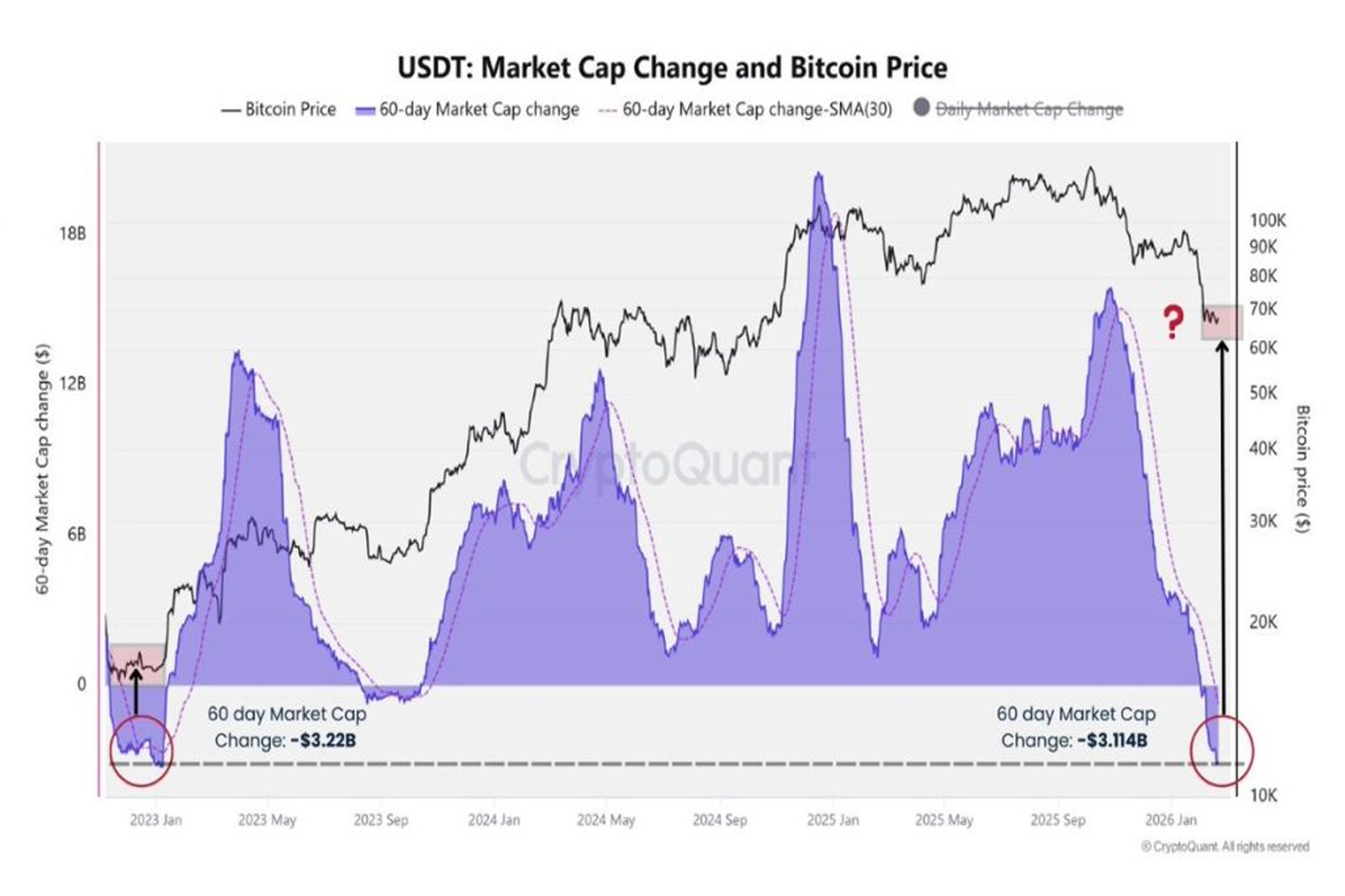 USDT-Liquidität wird negativ – Warnsignal für Bitcoin?