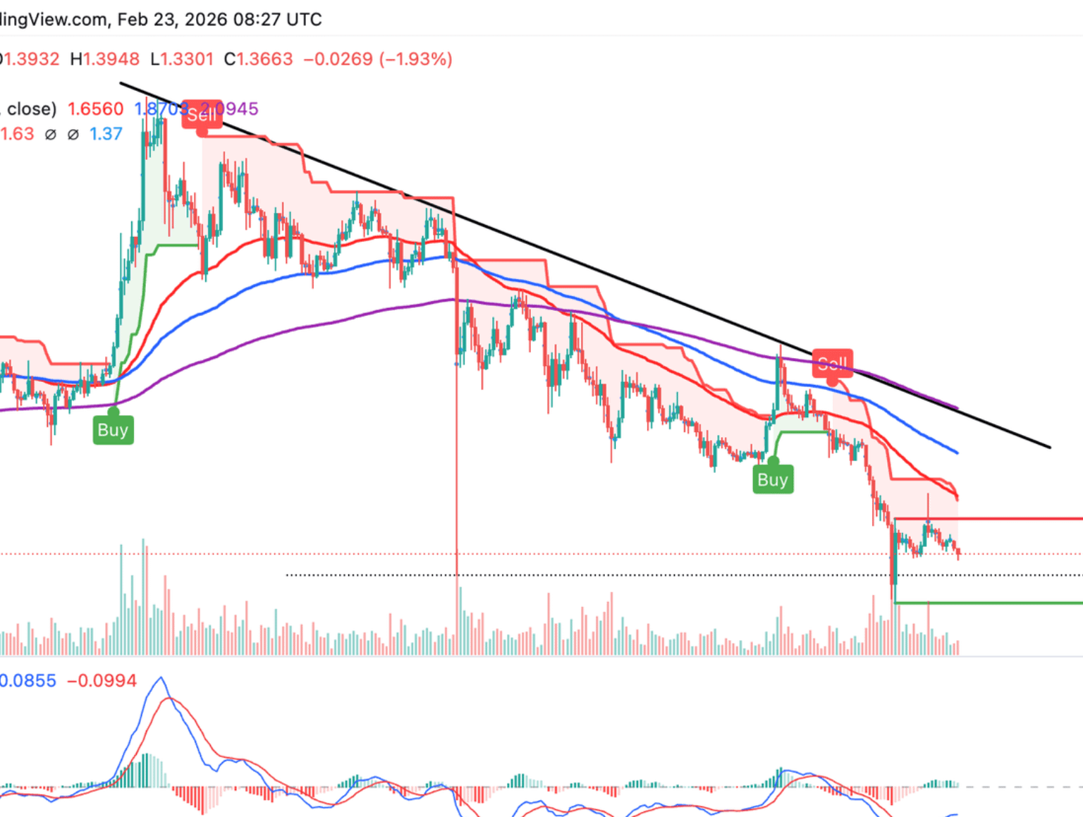 XRP also succumbed to the headwinds in the broader crypto market, falling to trade above $1.36. The remittance token’s upside appears limited by the SuperTrend indicator at $1.63, the downward-trending 50-day EMA at $1.66, the 100-day EMA at $1.87, and the 200-day EMA at $2.09.
