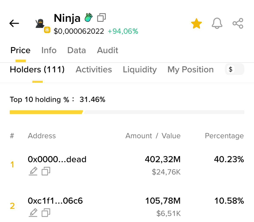 🥷 Ninja — One of the largest deflationary meme coins on BNB Chain