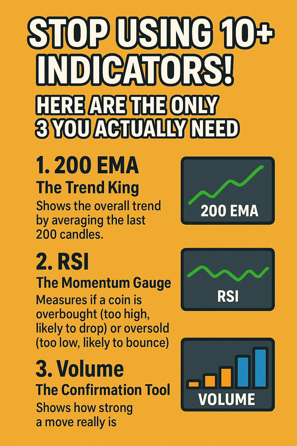 Wenn du auf Binance handelst und dein Diagramm wie ein Regenbogen-Chaos aus RSI, MACD, Bollinger-Bändern, Ichimoku-Wolken, Stochastiken… aussieht, STOPP. ❌