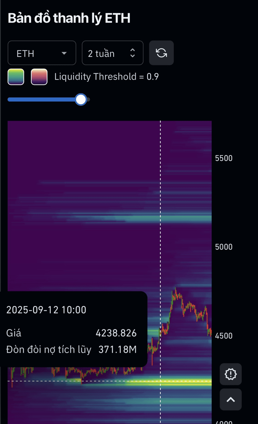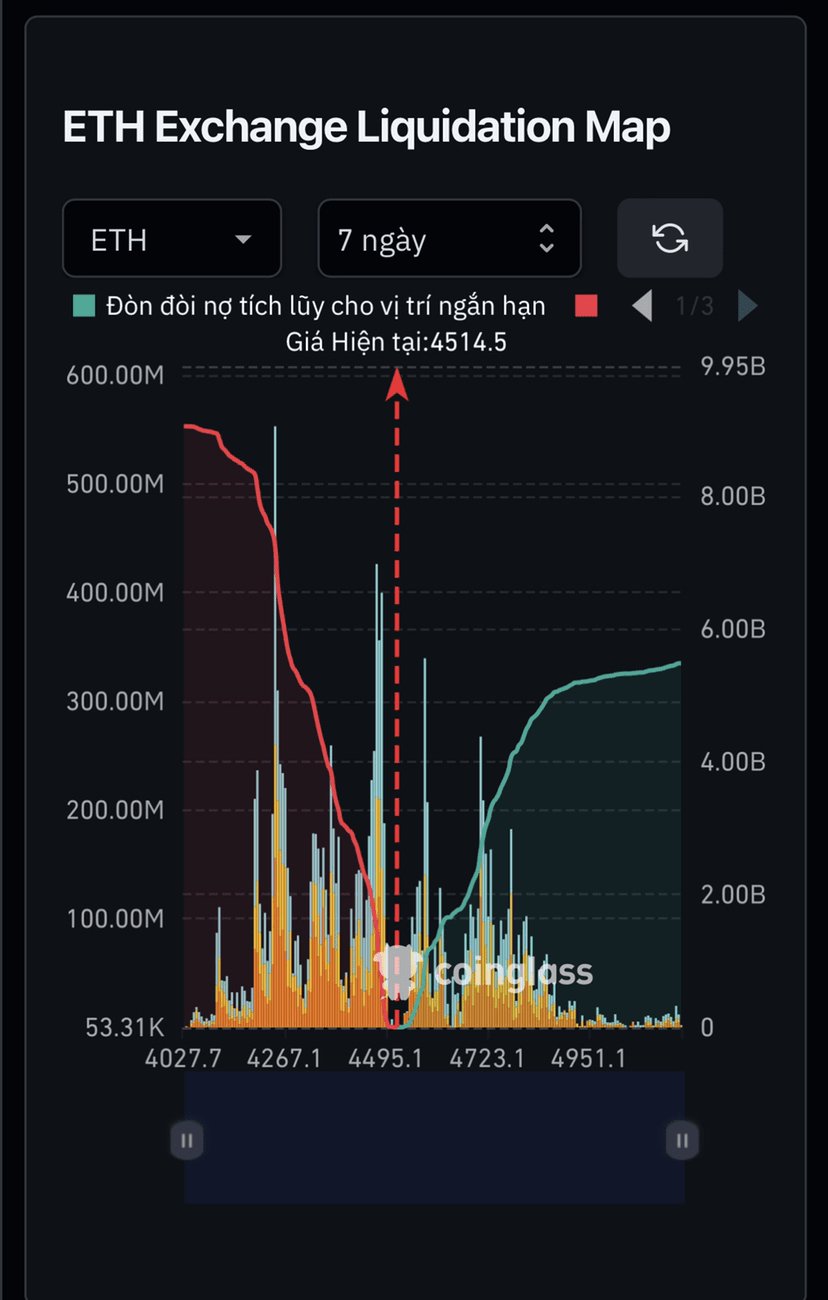 Es besteht die Möglichkeit, dass ETH den Liquidationsbereich von 4k3 - 4k2 Dollar abräumt.