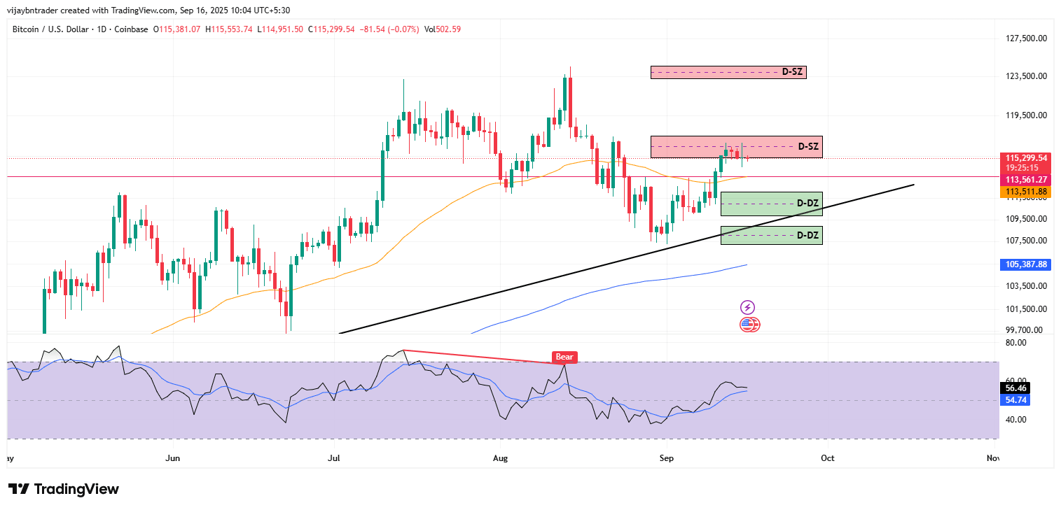 Neutrale Zone: 115,000-115,500 Bereich bis RSI eine gerichtete Bestätigung liefert