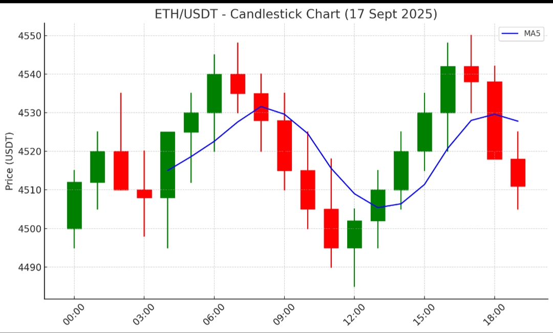 Ethereum ($ETH ) handelt derzeit um die $4,511-Marke und zeigt leichte Intraday-Volatilität. Der Preis schwankte in den letzten 24 Stunden zwischen $4,424 – $4,538, was einen stabilen, aber vorsichtigen Trend widerspiegelt.