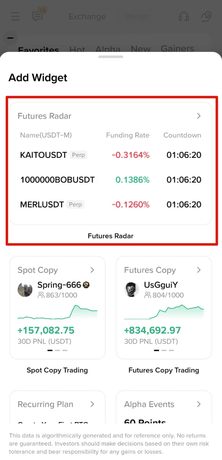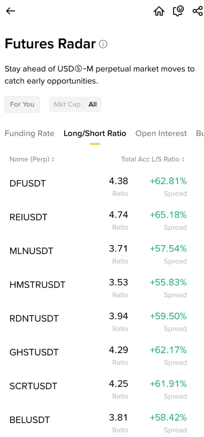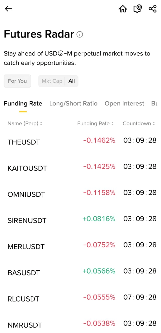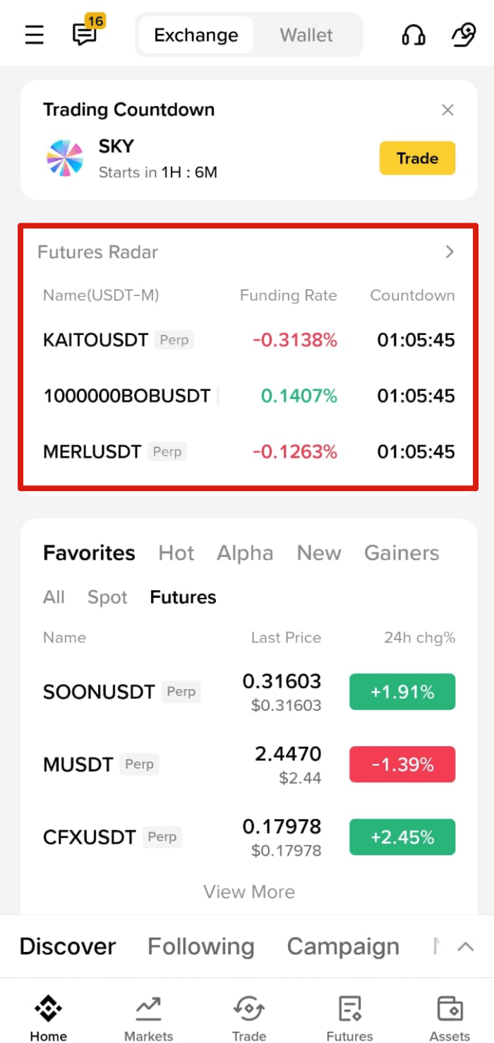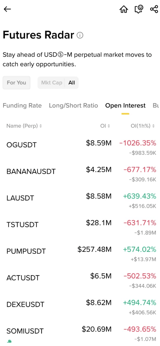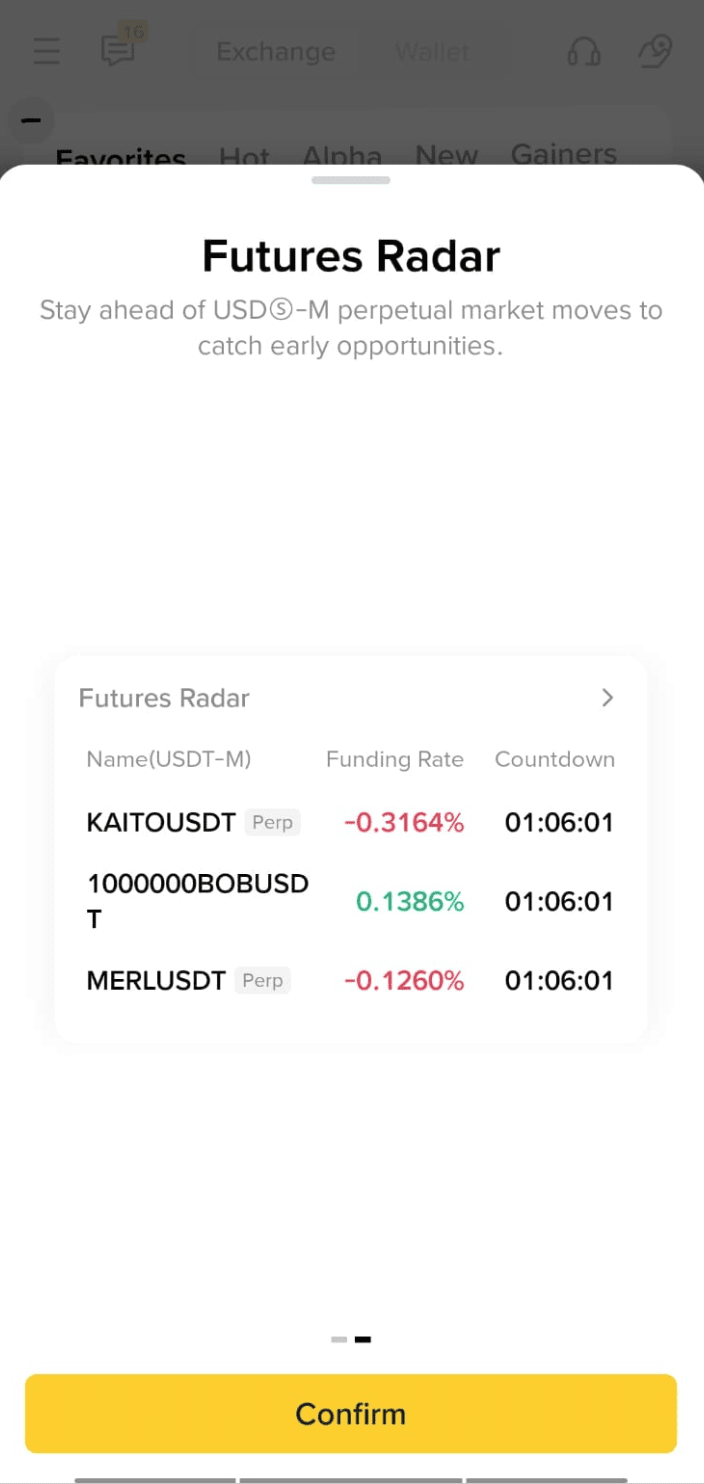 Nutzer mit Zugriff auf USDⓈ-M Perpetuals (unterliegt den Vorschriften ihres Landes oder ihrer Region) können das Futures Radar-Widget anzeigen.