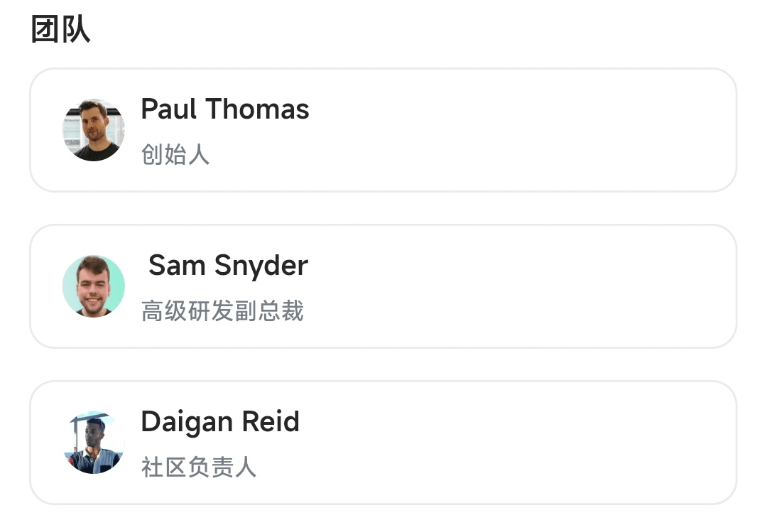 - Gemeinschaftsleiter Daigan Reid: Koordination des Gemeinschaftsaufbaus, Förderung des Wachstums des Ökosystems von Nutzern und Entwicklern.