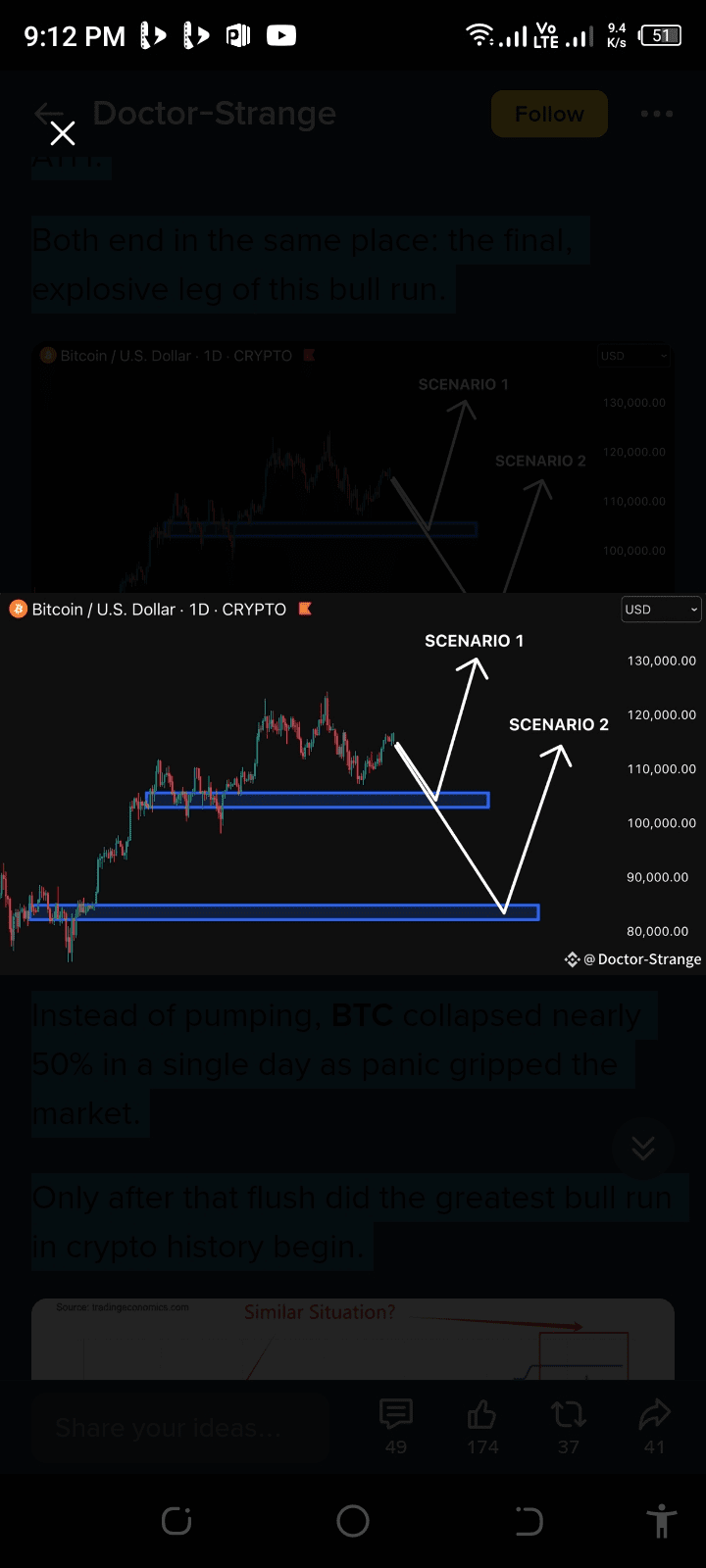 • Szenario 2: Ein schärferer Abfluss in Richtung 92K USD, gefolgt von einer gewaltsamen Erholung und neuen ATH.