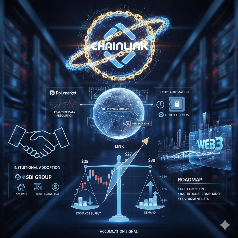 Chainlink hat gerade eine Partnerschaft mit Polymarket geschlossen, um die Auflösungen von Vorhersagemärkten auf dem Hauptnetz von Polygon zu verbessern. Sie integrieren Chainlink Data Streams für Echtzeitdaten, die manipulationssicher sind, und Chainlink Automation für automatische Abrechnungen. Das bedeutet zuverlässigere Vorhersagen, weniger Streitereien über „kam die Daten rechtzeitig an?“ — echte nutzbare Upgrades, die wichtig sind.Sinkendes Austauschangebot = Akkumulationssignal