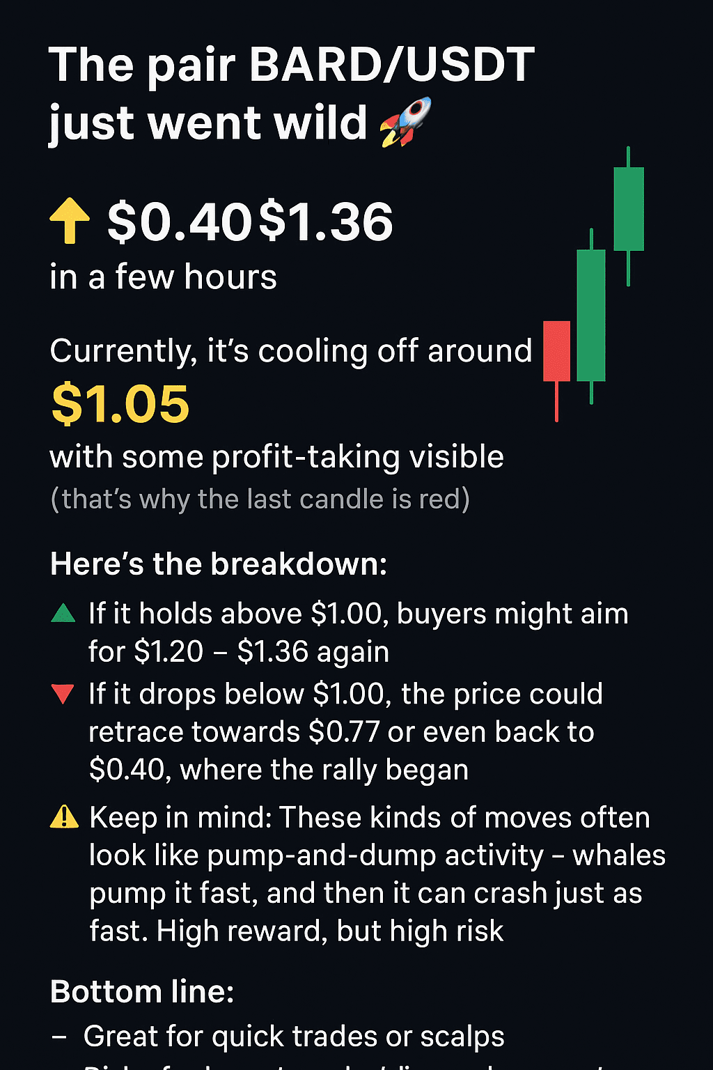 đœ Wenn es unter 1,00 $ fĂ€llt, könnte der Preis auf 0,77 $ oder sogar zurĂŒck auf 0,40 $ retracen, wo die Rally begann.#BinanceHODLerBARD #bardcoin
