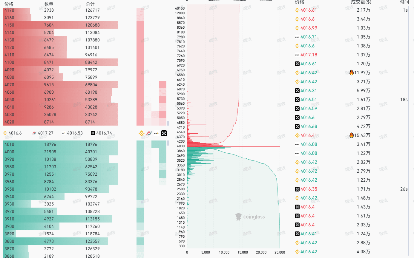 Die Liquidations-Hitze-Map zeigt weiter, dass im Bereich von 3900-4000 Dollar Hunderte von Millionen Hebel-Long-Positionen angesammelt wurden; wenn die Unterstützung bricht, wird es eine Kettenreaktion von Liquidationen auslösen.