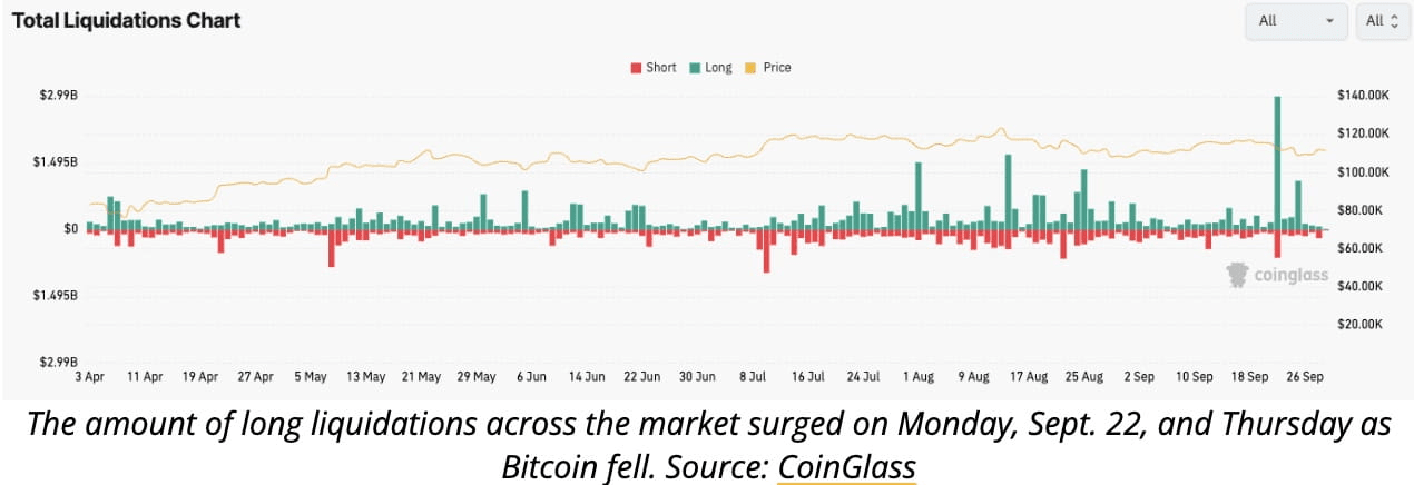 BTC ist am frühen Montag zurückgeprallt und hat die Marke von 112.000 $ überschritten, nachdem er letzte Woche auf 109.000 $ gefallen war - ein Rückgang, der zwei Wellen von Liquidationen ausgelöst hat. Trotz der Turbulenzen betonen Analysten, dass der Bullenmarkt gesund bleibt, da langfristige Inhaber das Angebot reduzieren und die Gewinnmitnahmen langsamer werden.