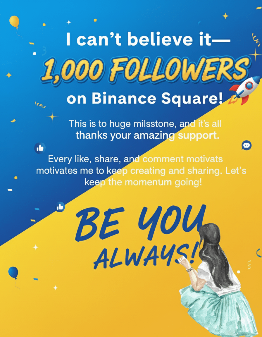 Ich kann es nicht glauben—1.000 Follower auf Binance Square! Das ist ein riesiger Meilenstein, und das alles dank eurer großartigen Unterstützung. Jedes Like, jeder Share und jeder Kommentar motiviert mich, weiterhin Werte zu schaffen und zu teilen. Lass uns das Momentum aufrechterhalten! Denk daran: SEI IMMER DU SELBST! 🚀