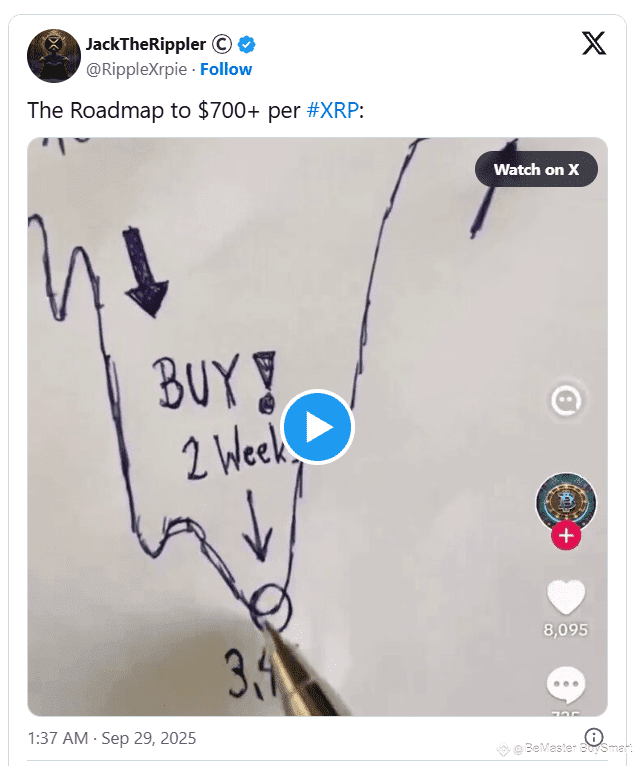 $XRP Die Vorstellung eines digitalen Vermögenswerts, der von wenigen Dollar auf Hunderte springt, fesselt die Vorstellungskraft wie nur wenige Marktgeschichten. Der neu geteilte Fahrplan von JackTheRippler auf X hat genau das getan, indem er eine auffällige Preisreise für XRP präsentiert, die eine genauere Untersuchung erfordert.