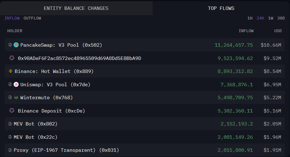 PancakeSwap V3 Pool (0x502): ~$11 Millionen rein, ~$11 Millionen raus