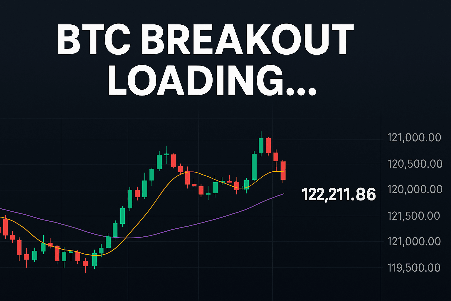 $122.800, Bitcoin konsolidiert sich nun in der NĂ€he von $122.211 und zeigt klassische Anzeichen eines kurzfristigen bullischen Fortsetzungsmusters.