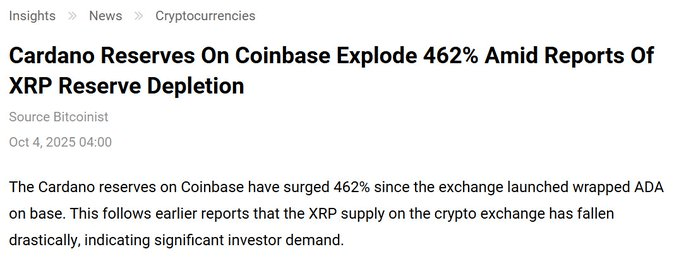 Institutionelles Interesse: Jüngste Ankündigungen zeigen, dass die US-Regierung ADA in ihre Initiative zur digitalen Vermögenslagerung integriert, dabei wird Cardanos robuste Sicherheit und peer-reviewed Architektur hervorgehoben. In der Zwischenzeit steigen die Reserven von Coinbase's Wrapped ADA (cbADA) stark an, was auf eine wachsende Akzeptanz an den Börsen hinweist.