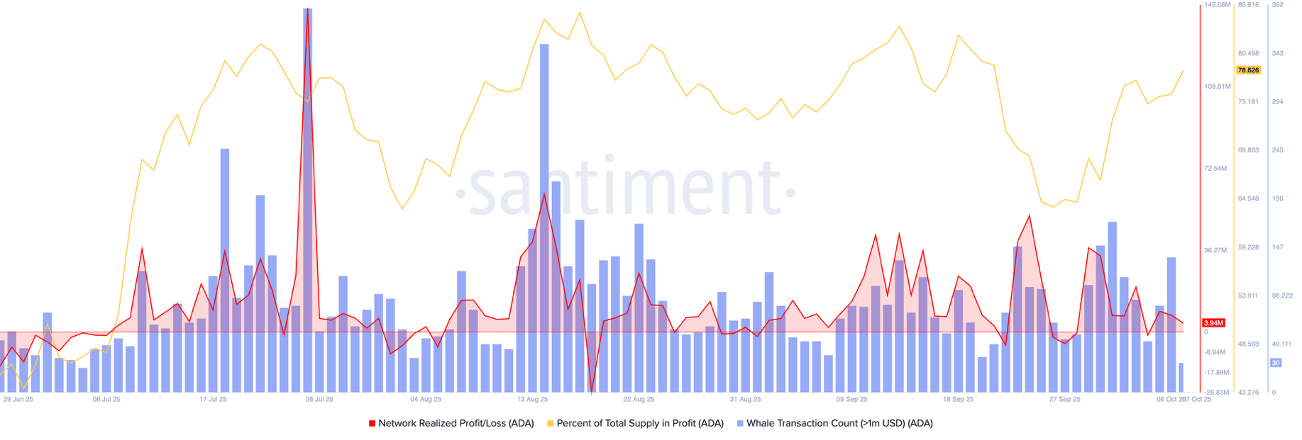 Der Anstieg des Anteils von ADA im Gewinn, der 78,62 % erreicht hat, ein Anstieg von 69,21 % am 24. September, unterstützt dies und zeigt eine zunehmende Nachfrage, mit Spielraum für weiteres Wachstum, bevor die Überkauft-Niveaus von über 90 % erreicht werden.